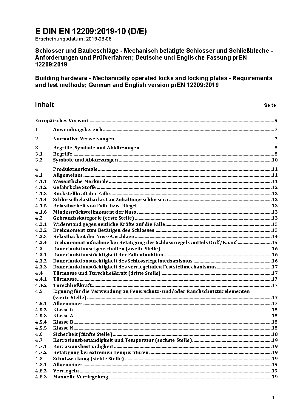 Building hardware - Locks and latches - Mechanically operated locks, latches and locking plates - Requirements and test methods; German version EN 12209:2003, Corrigenda to DIN EN 12209:2004-03; German version EN 12209:2003/AC:2005