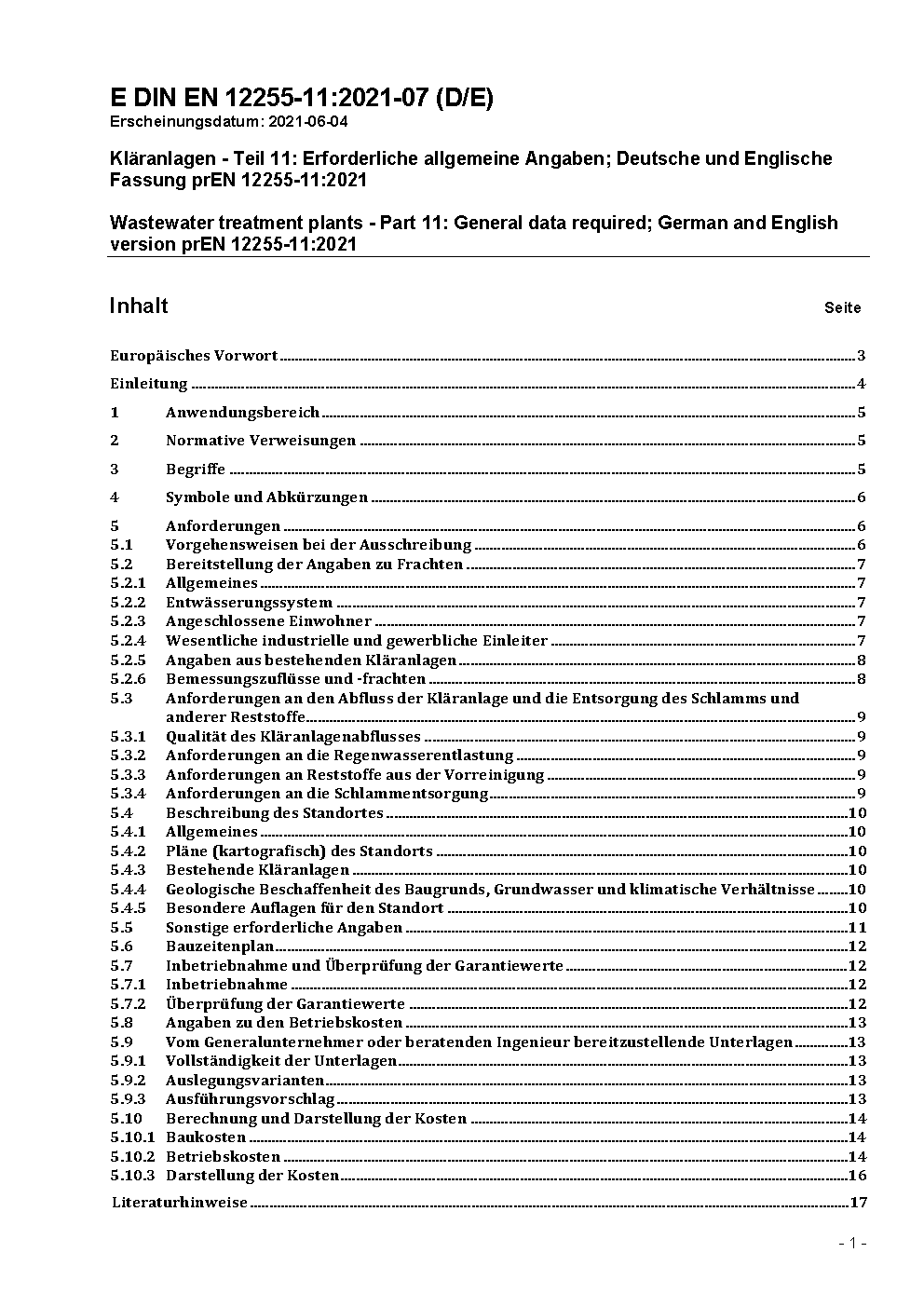 Kläranlagen - Teil 11: Erforderliche allgemeine Angaben; Deutsche Fassung EN 12255-11:2001