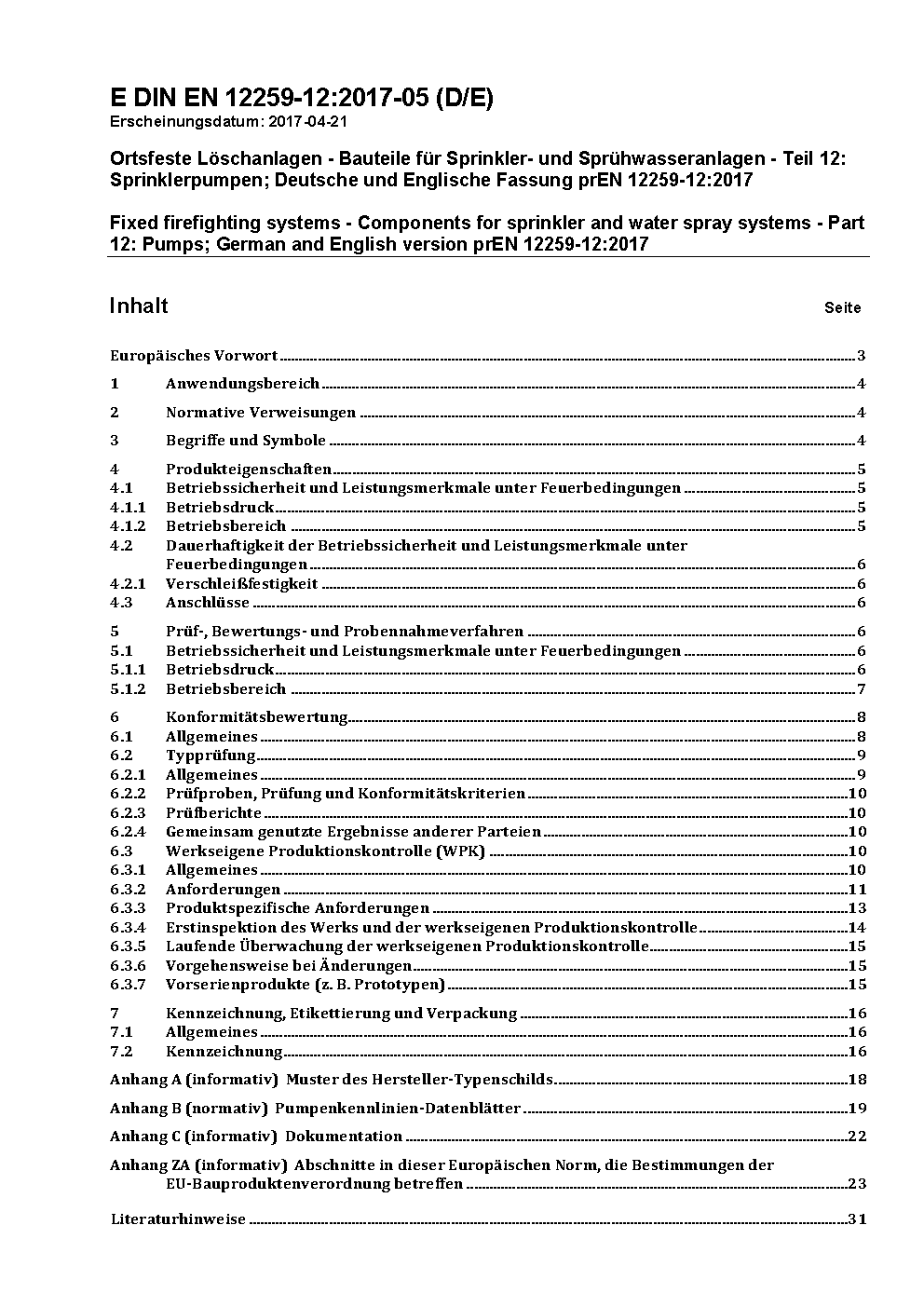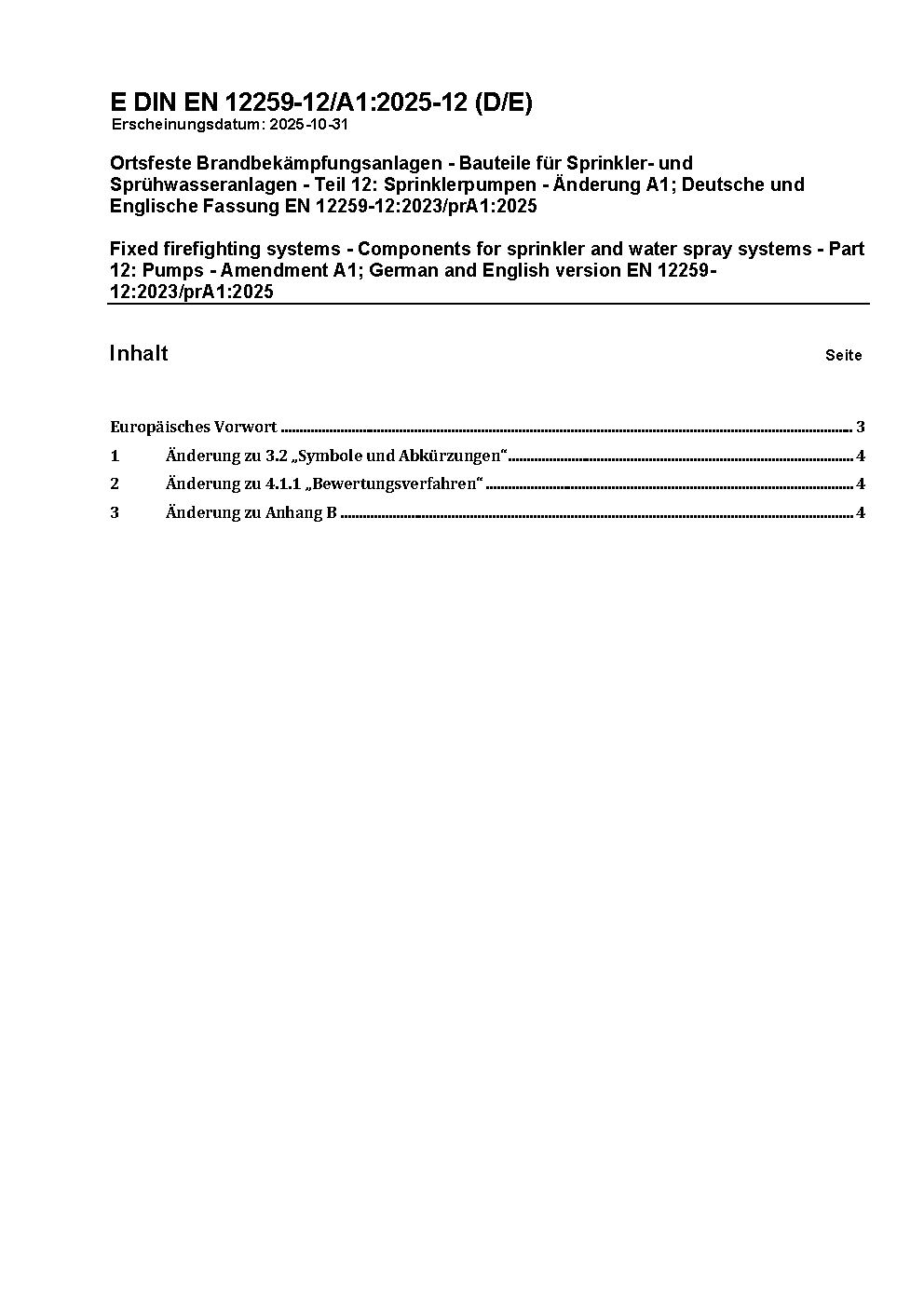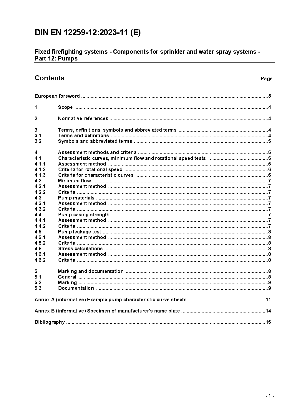 Fixed firefighting systems - Components for sprinkler and water spray systems - Part 12: Pumps; German version EN 12259-12:2023.