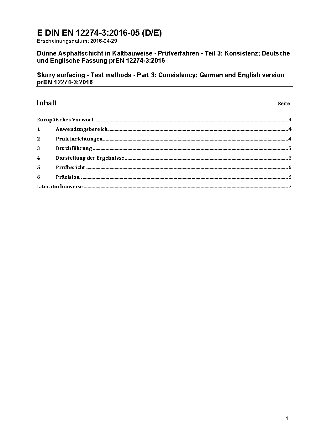 Dünne Asphaltschicht in Kaltbauweise - Prüfverfahren - Teil 3: Konsistenz; Deutsche Fassung EN 12274-3:2001