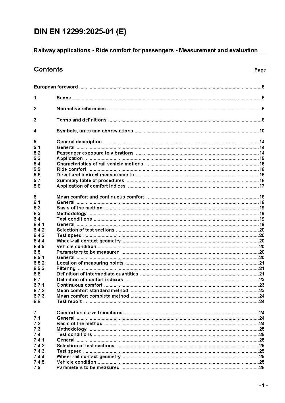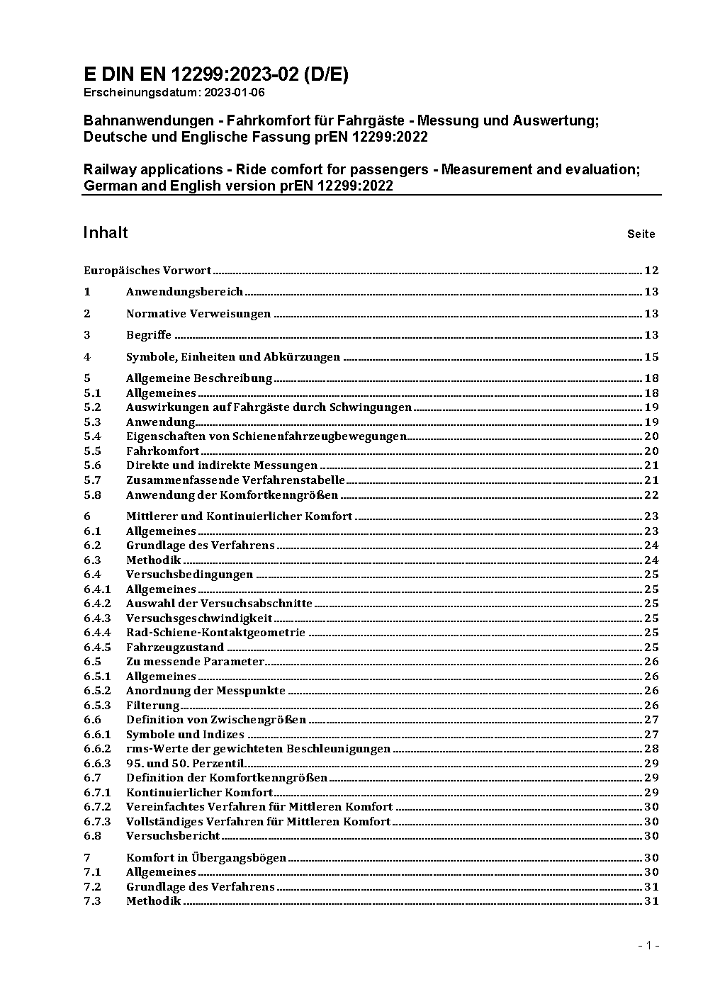 Bahnanwendungen - Fahrkomfort für Fahrgäste - Messung und Auswertung; Deutsche und Englische Fassung EN 12299:2024/prA1:2026