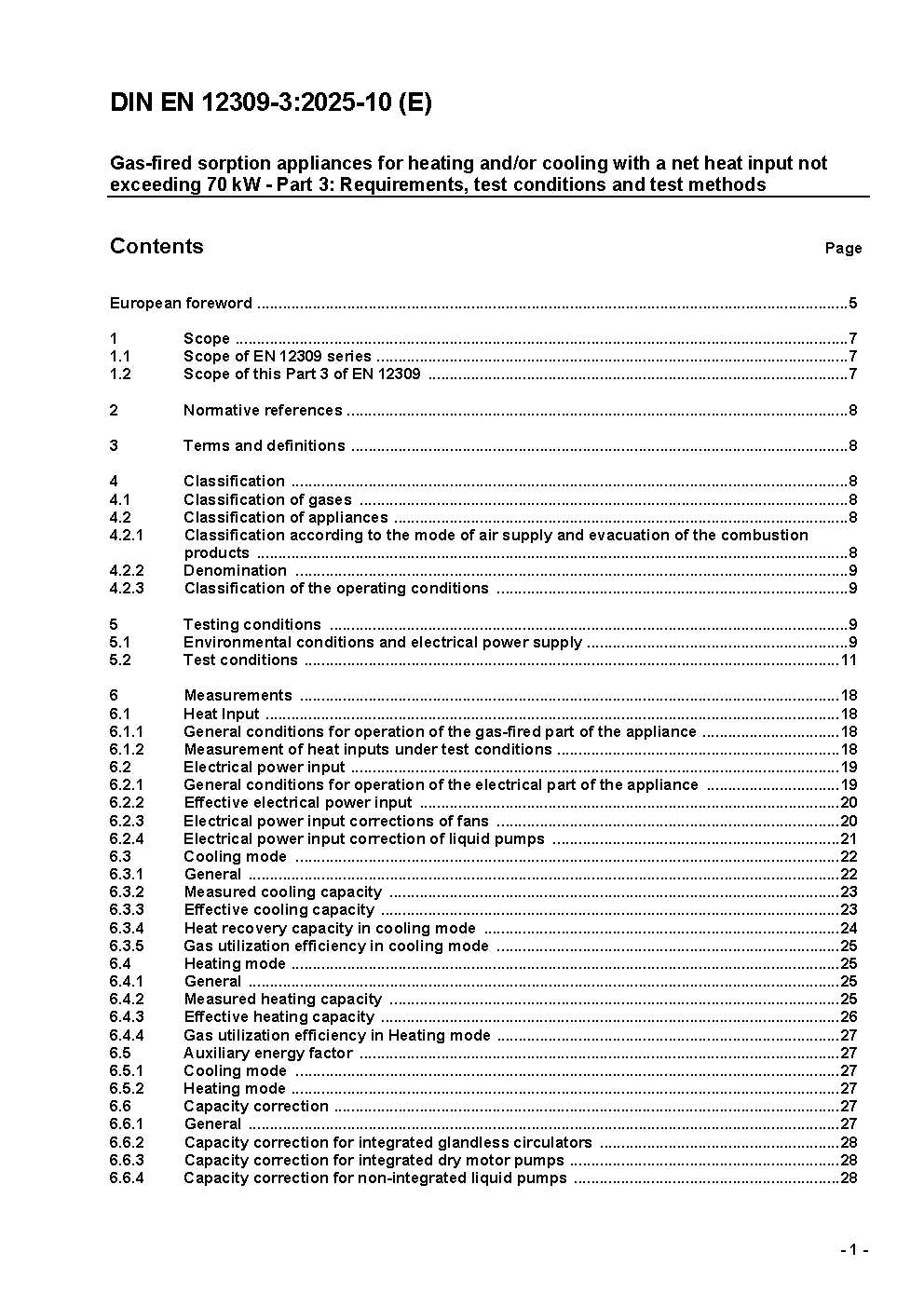 Gas-fired sorption appliances for heating and/or cooling with a net heat input not exceeding 70 kW - Part 3: Test conditions; German version prEN 12309-3:2012