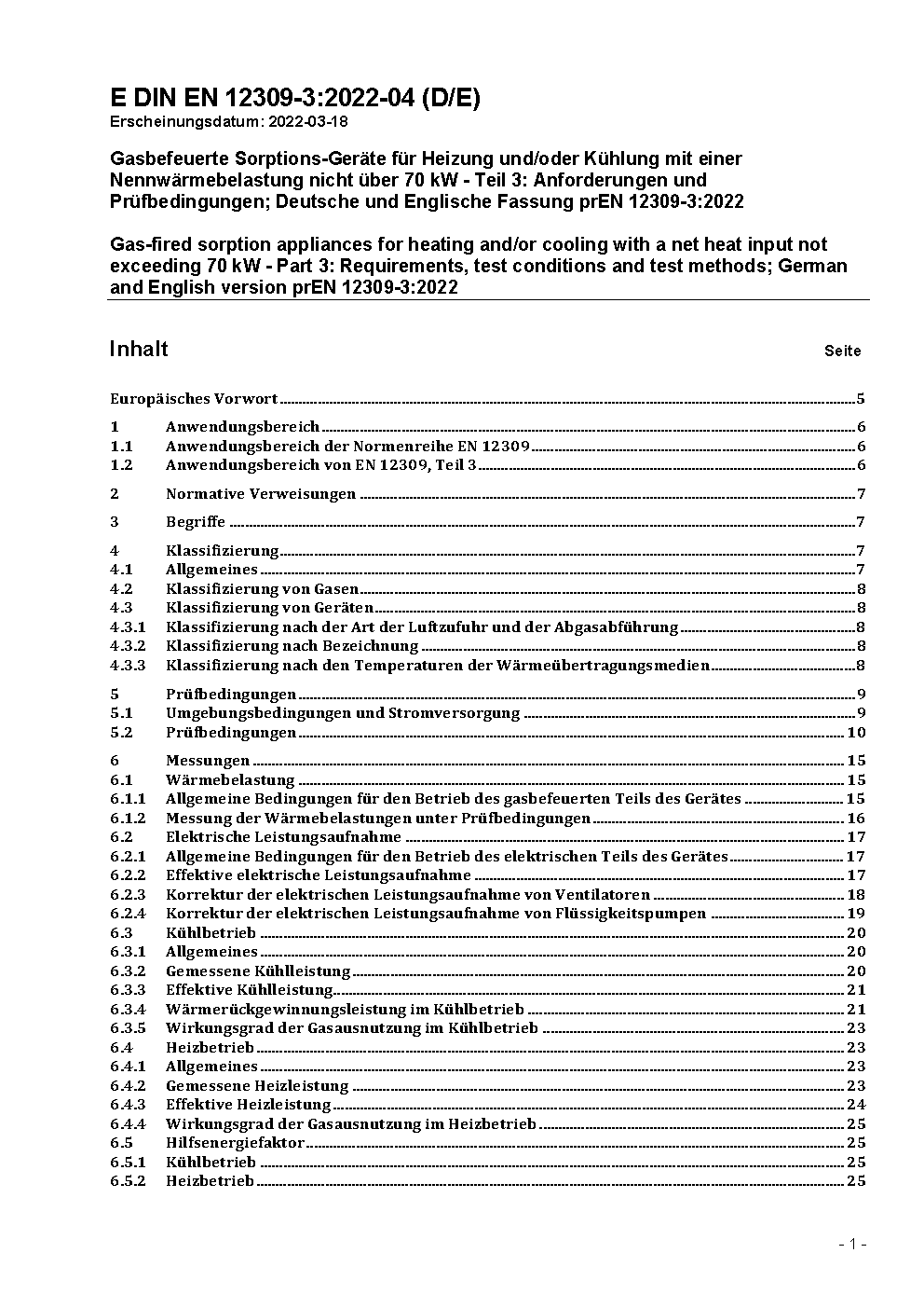 Gasbefeuerte Sorptions-Geräte für Heizung und/oder Kühlung mit einer Nennwärmebelastung nicht über 70 kW - Teil 3: Prüfbedingungen; Deutsche Fassung prEN 12309-3:2012