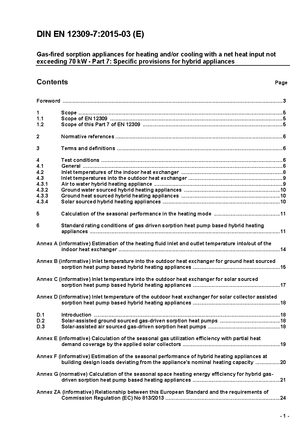 Gasbefeuerte Sorptions-Geräte für Heizung und/oder Kühlung mit einer Nennwärmebelastung nicht über 70 kW - Teil 7: Spezifische Bestimmungen für Hybridanlagen; Deutsche Fassung prEN 12309-7:2012
