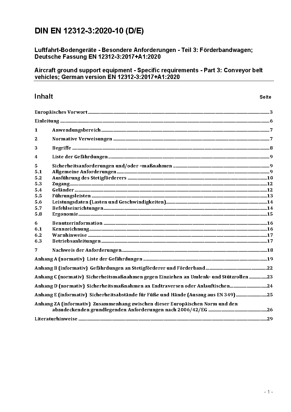Luftfahrt-Bodengeräte - Besondere Anforderungen - Teil 3: Förderbandwagen; Deutsche Fassung EN 12312-3:2003+A1:2009 / Achtung: Daneben gilt DIN EN 12312-3 (2003-09) noch bis 2009-12-28.*Übergangsfrist, festgelegt durch DIN EN 12312-3 (2017-04), bis 2017-07-31 beachten.