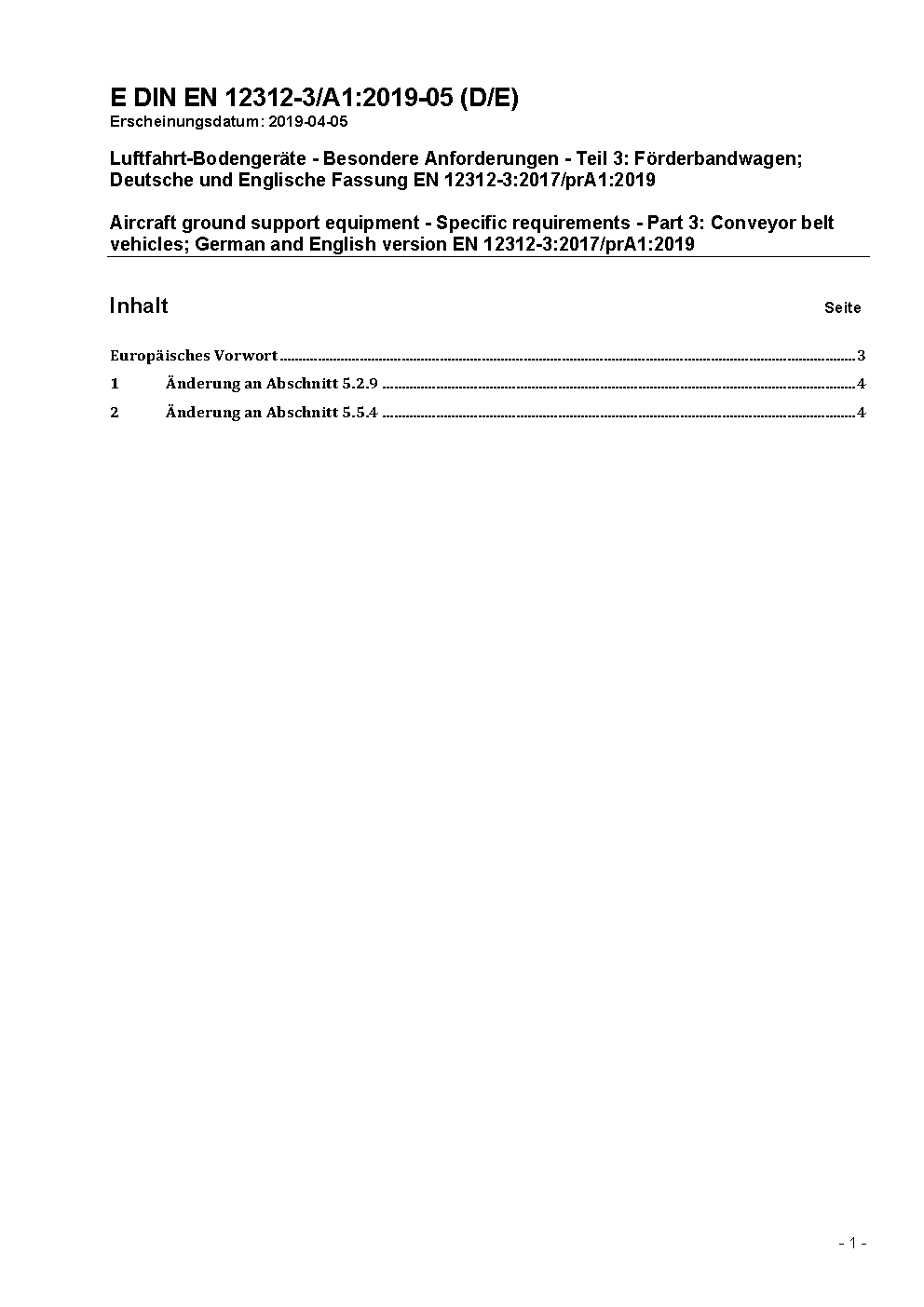 DIN EN 12312-3 (2003-09) remains valid alongside this standard until 2009-12-28.*A transition period, as set out in DIN EN 12312-3 (2017-04), exists until 2017-07-31.