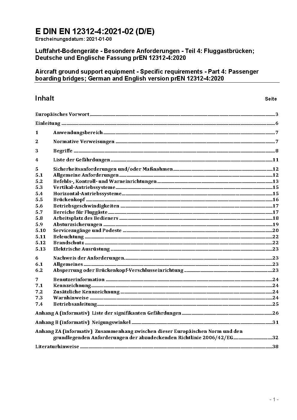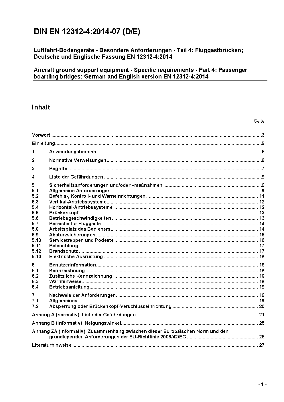 Aircraft ground support equipment - Specific requirements - Part 4: Passenger boarding bridges; German version EN 12312-4:2003+A1:2009.