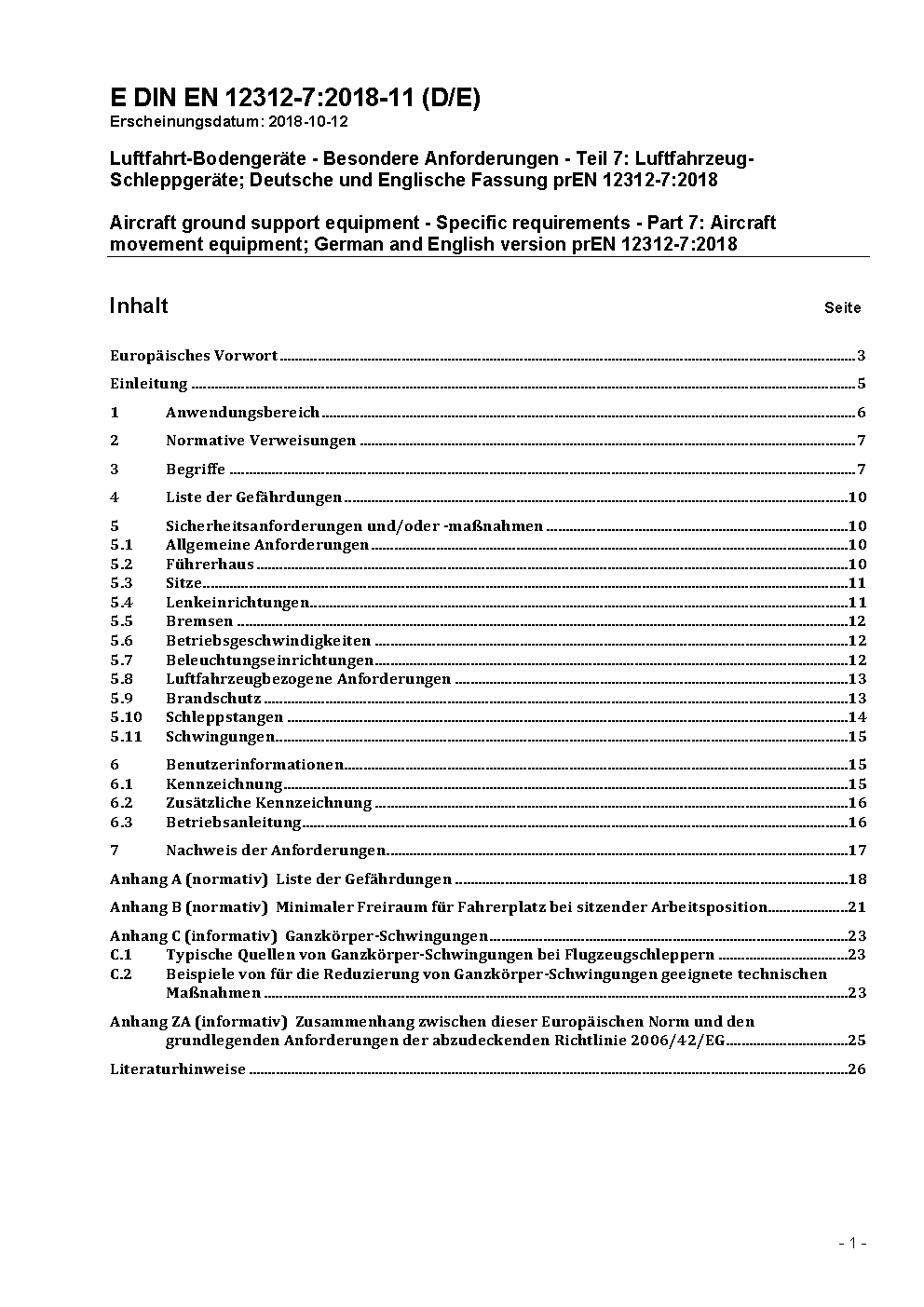 DIN EN 12312-7 (2005-10) remains valid alongside this standard until 2009-12-28.