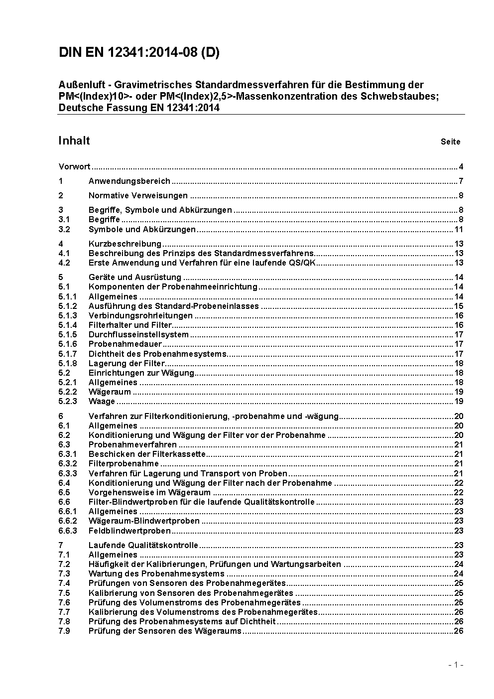 Ambient air - Standard gravimetric measurement method for the determination of the PM<(Index)10> or PM<(Index)2,5> mass concentration of suspended particulate matter; German version EN 12341:2023