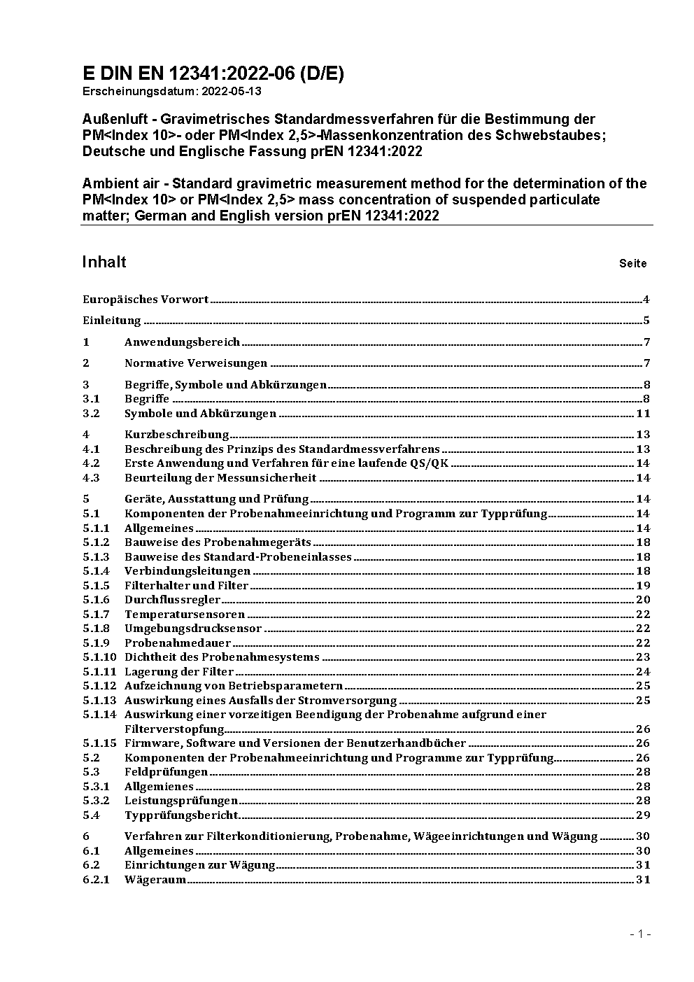Außenluft - Gravimetrisches Standardmessverfahren für die Bestimmung der PM<(Index)10>- oder PM<(Index)2,5>-Massenkonzentration des Schwebstaubes; Deutsche Fassung EN 12341:2023