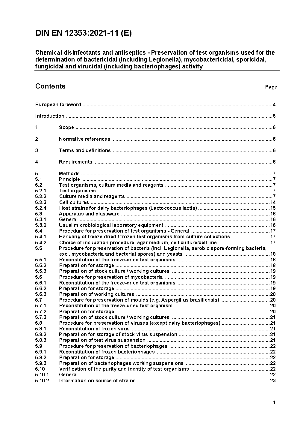 Chemische Desinfektionsmittel und Antiseptika - Aufbewahrung von Testorganismen für die Prüfung der bakteriziden, mykobakteriziden, sporiziden und fungiziden Wirkung; Deutsche Fassung EN 12353:2006