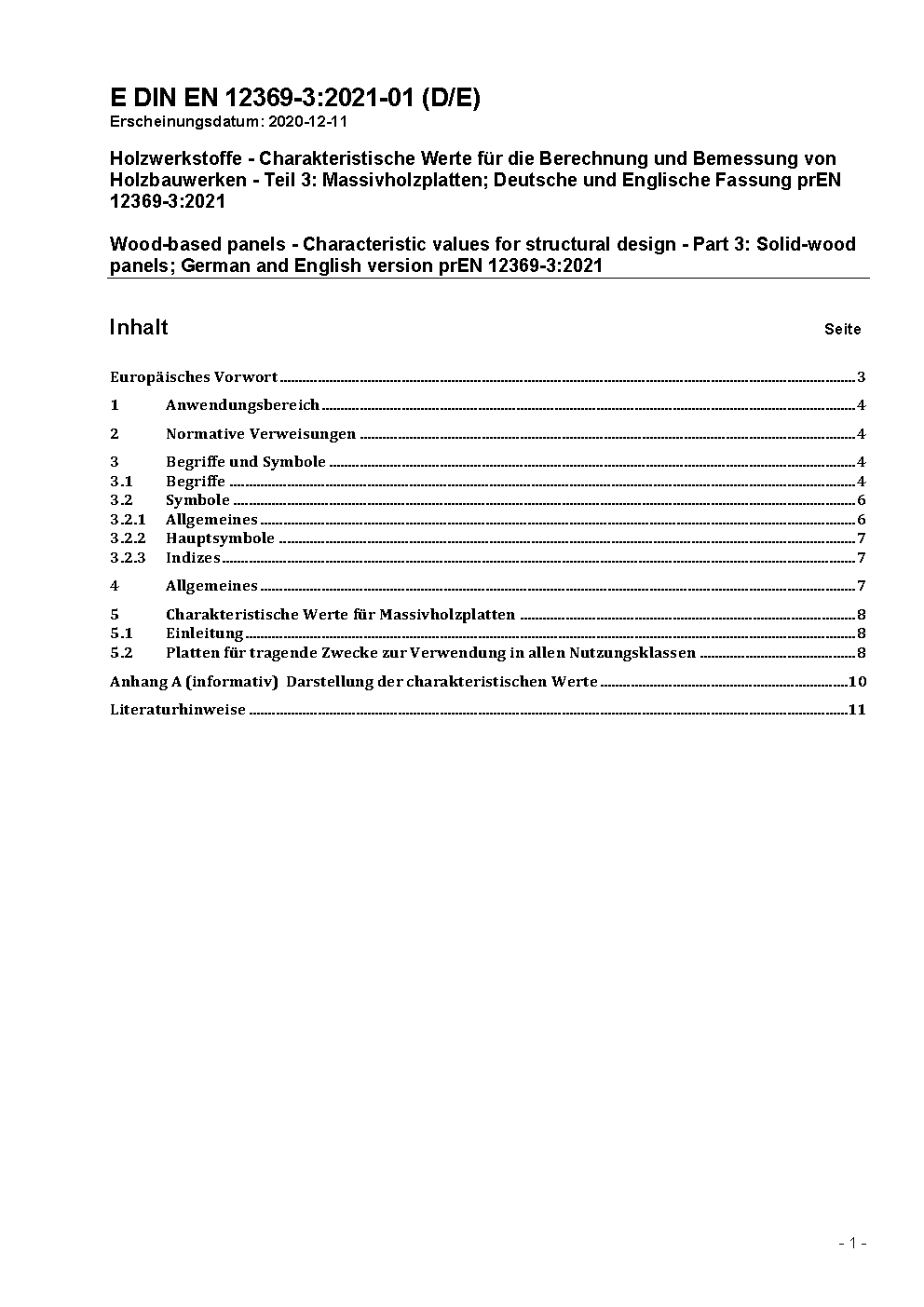 Holzwerkstoffe - Charakteristische Werte für die Berechnung und Bemessung von Holzbauwerken - Teil 3: Massivholzplatten; Deutsche Fassung EN 12369-3:2022