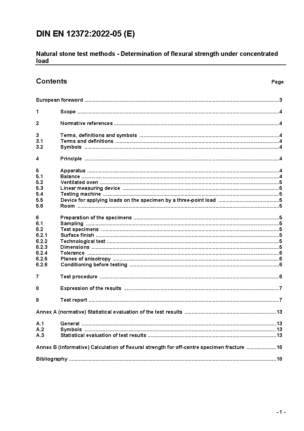 Natural stone test methods - Determination of flexural strength under concentrated load; German version EN 12372:2006