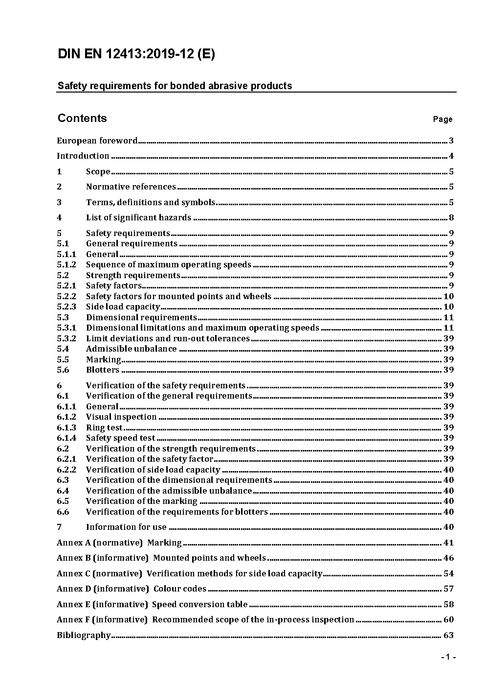 Sicherheitsanforderungen für Schleifkörper aus gebundenem Schleifmittel; Deutsche und Englische Fassung prEN 12413:2018