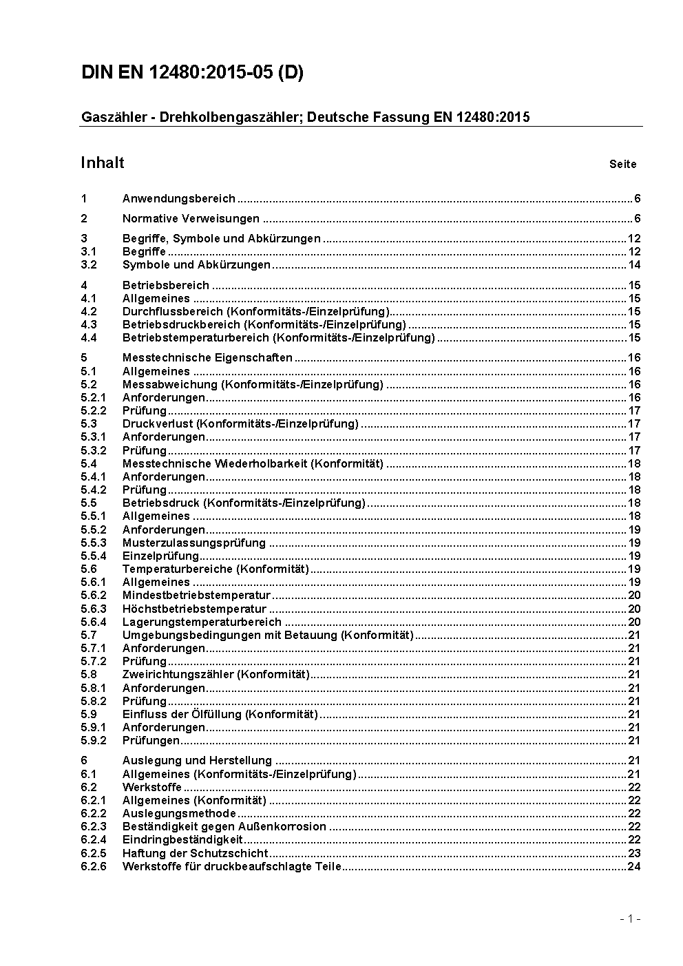 Gas meters - Rotary displacement gas meters; German version EN 12480:2018.