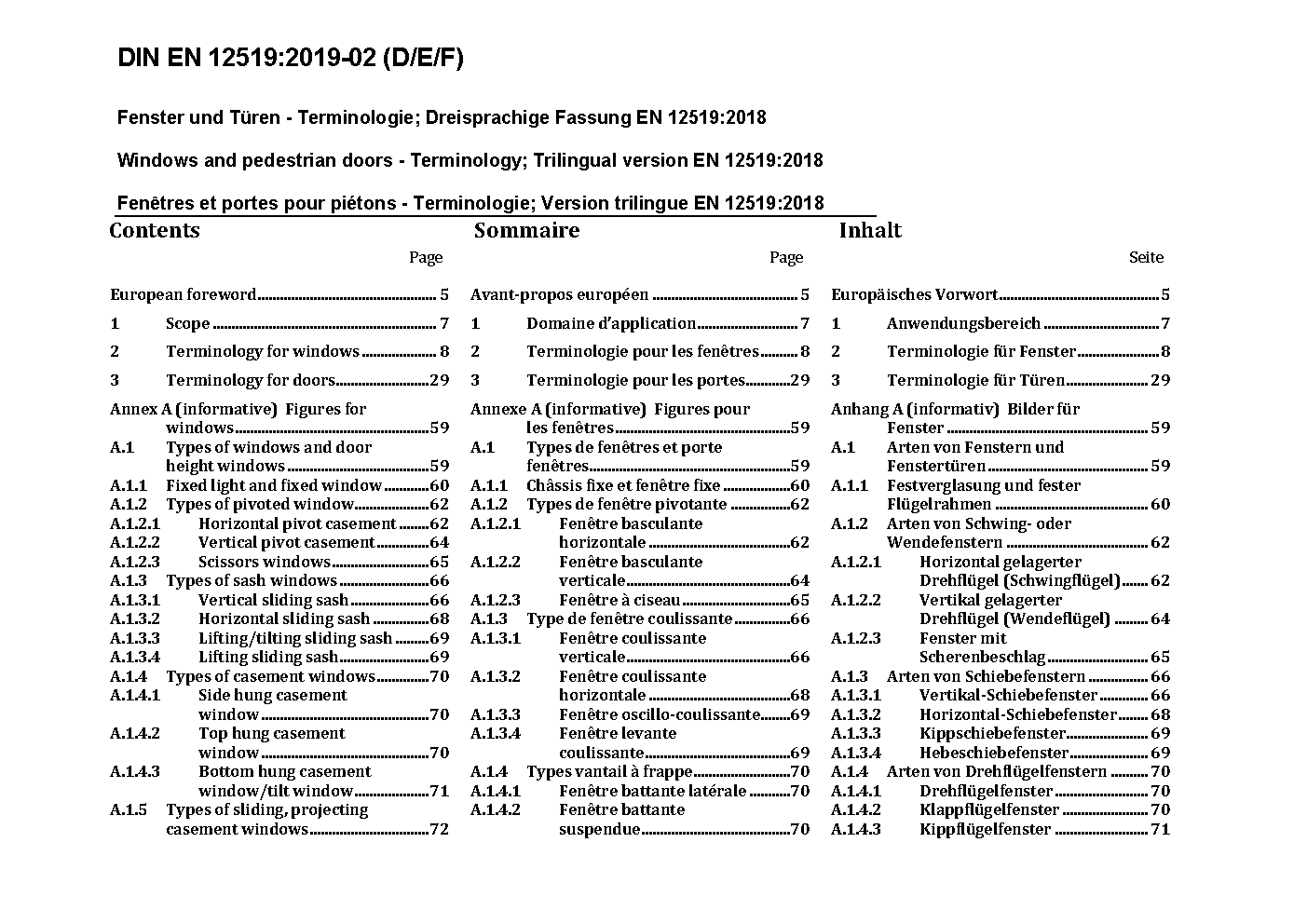 Fenêtres et portes pour piétons - Terminologie; Version trilingue EN 12519:2004
