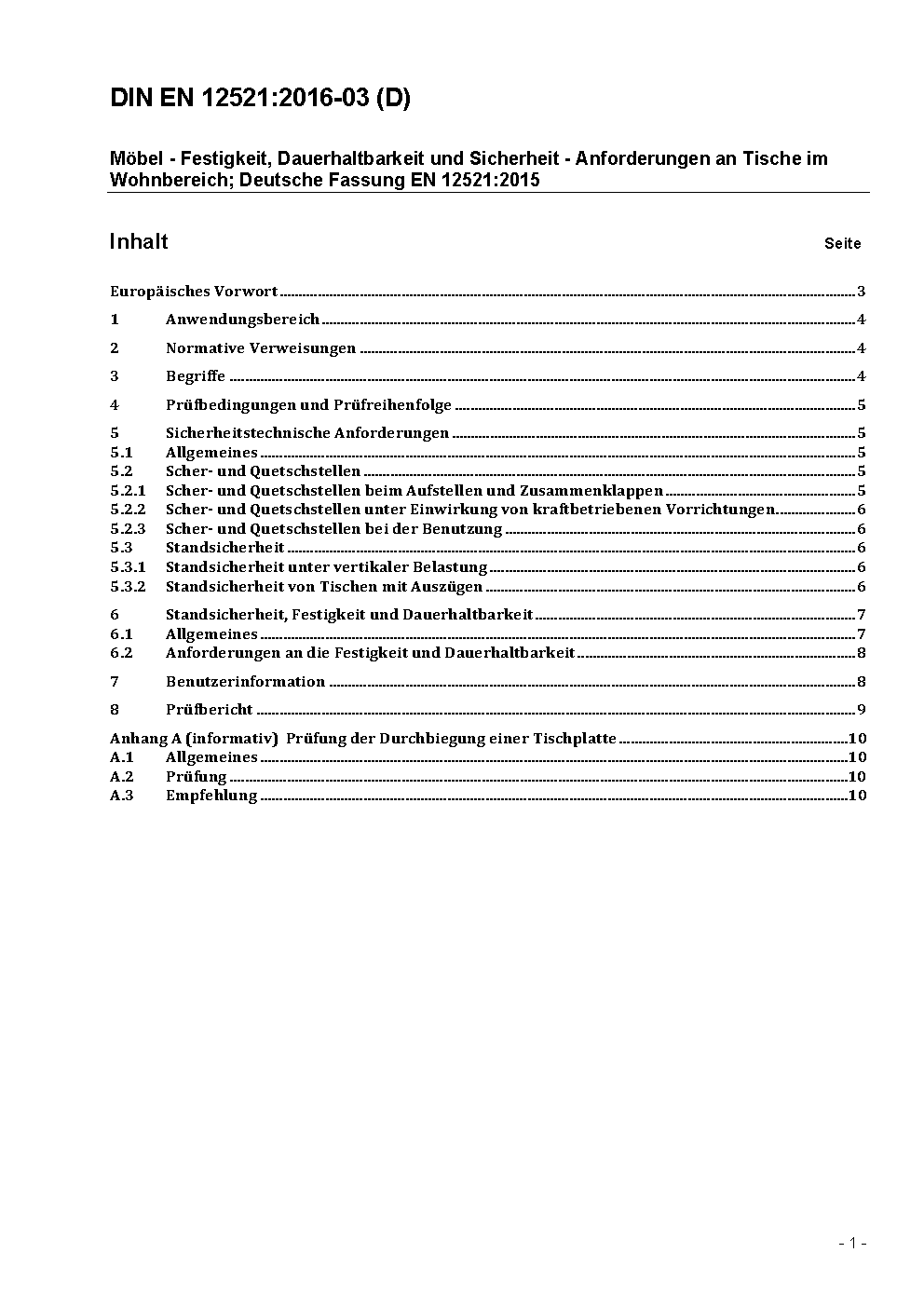 Möbel - Festigkeit, Dauerhaltbarkeit und Sicherheit - Anforderungen an Tische im Wohnbereich; Deutsche Fassung EN 12521:2009