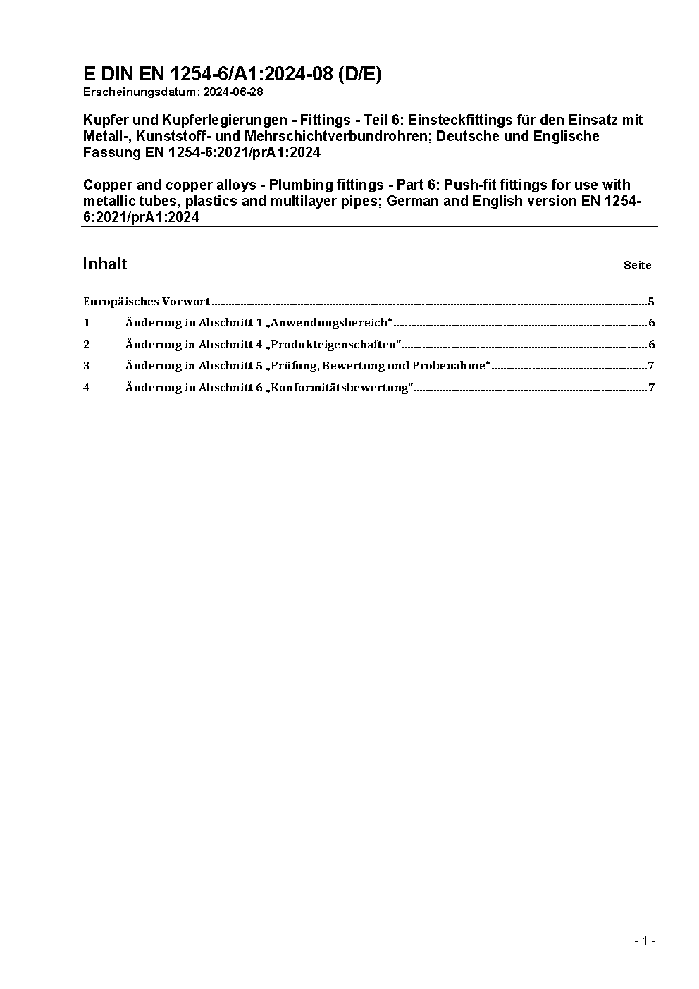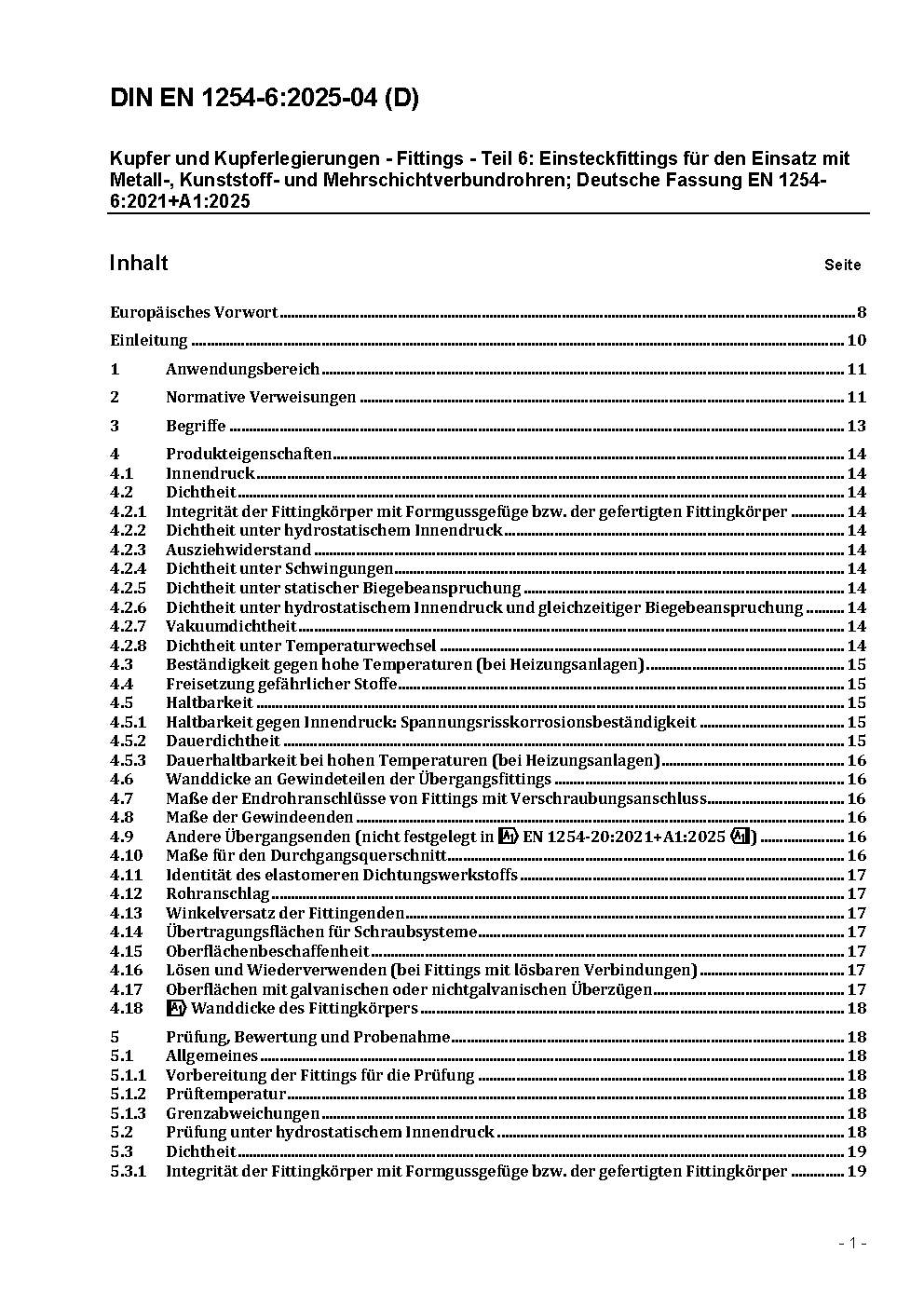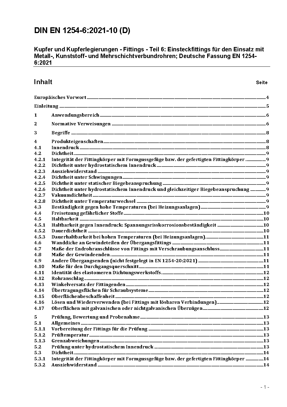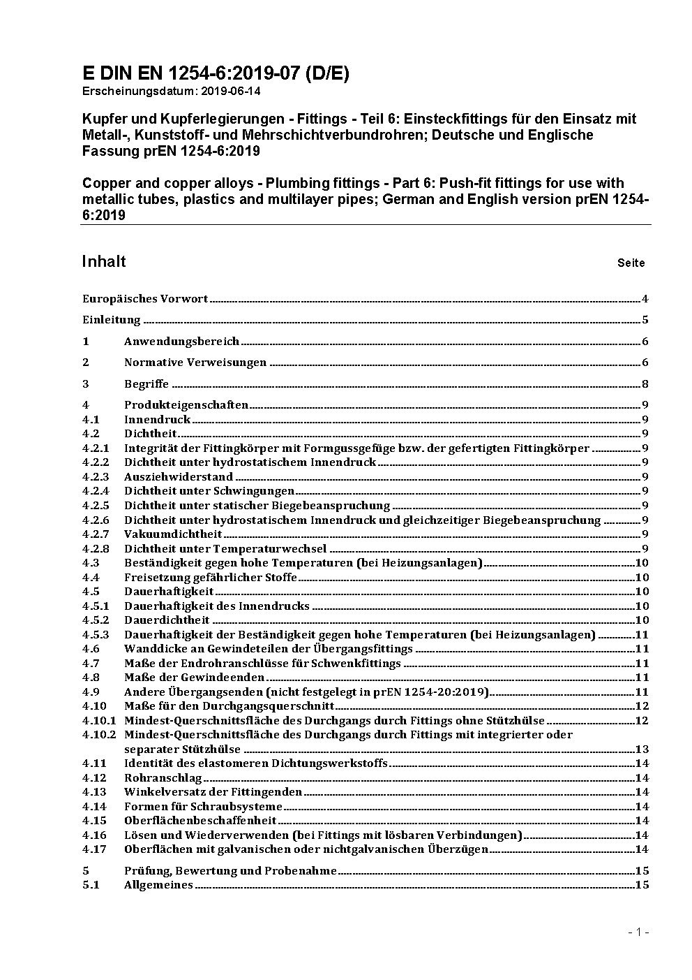 Kupfer und Kupferlegierungen - Fittings - Teil 6: Einsteckfittings; Deutsche Fassung prEN 1254-6:2004
