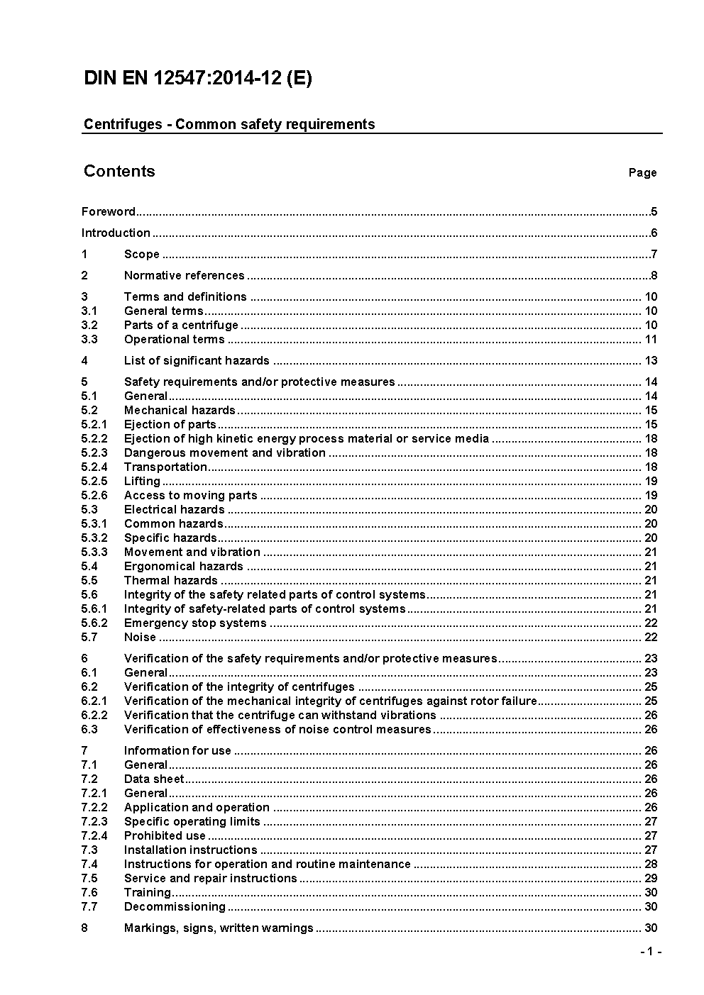 Centrifuges - Common safety requirements; German version prEN 12547:1996