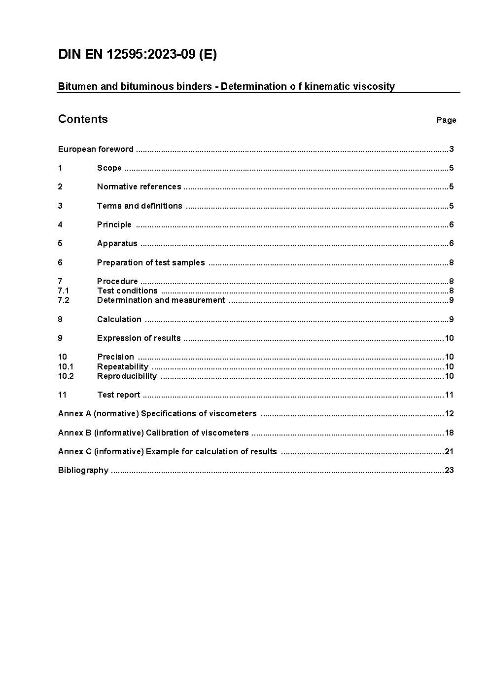 Bitumen and bituminous binders - Determination of kinematic viscosity; German version EN 12595:2007