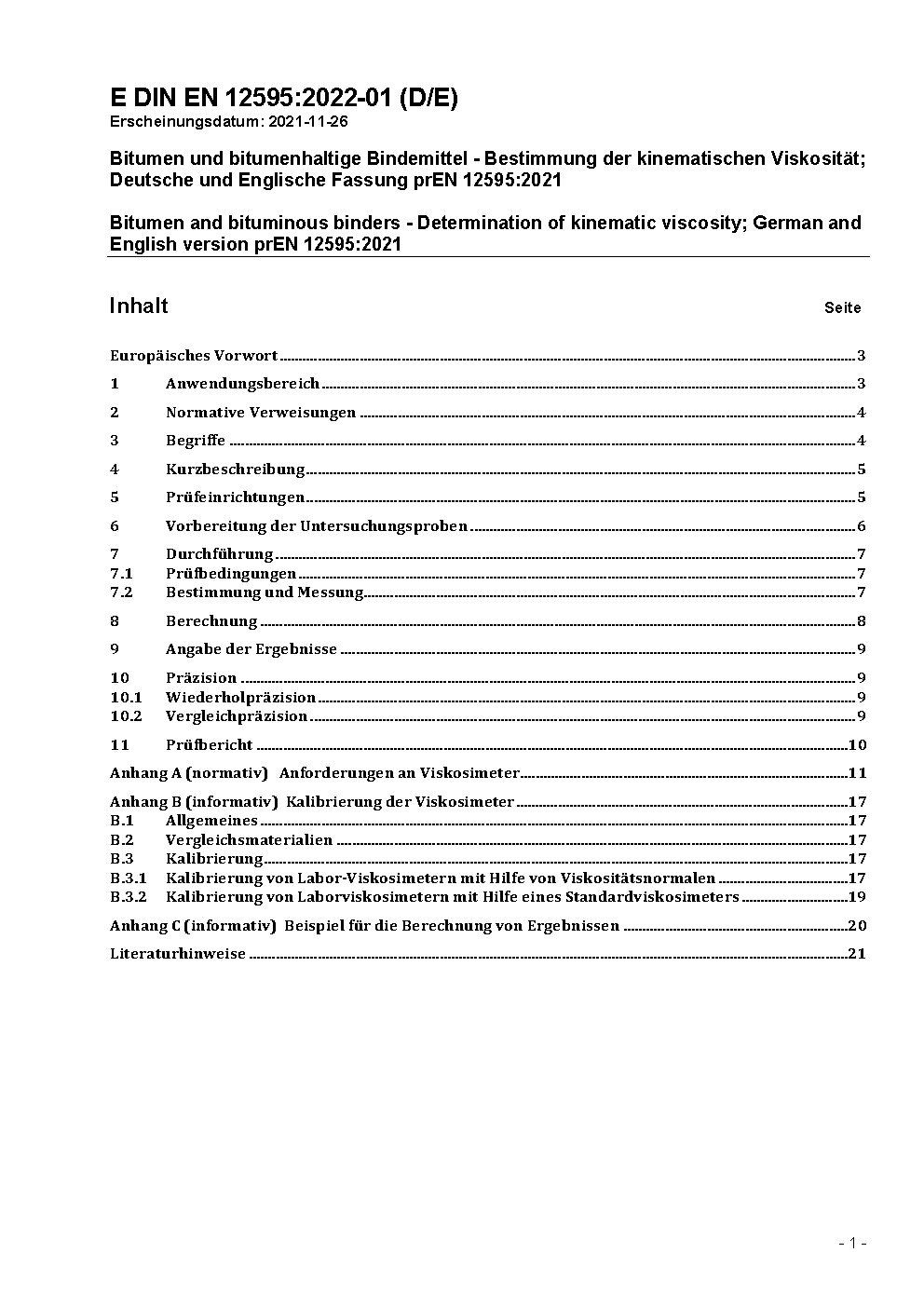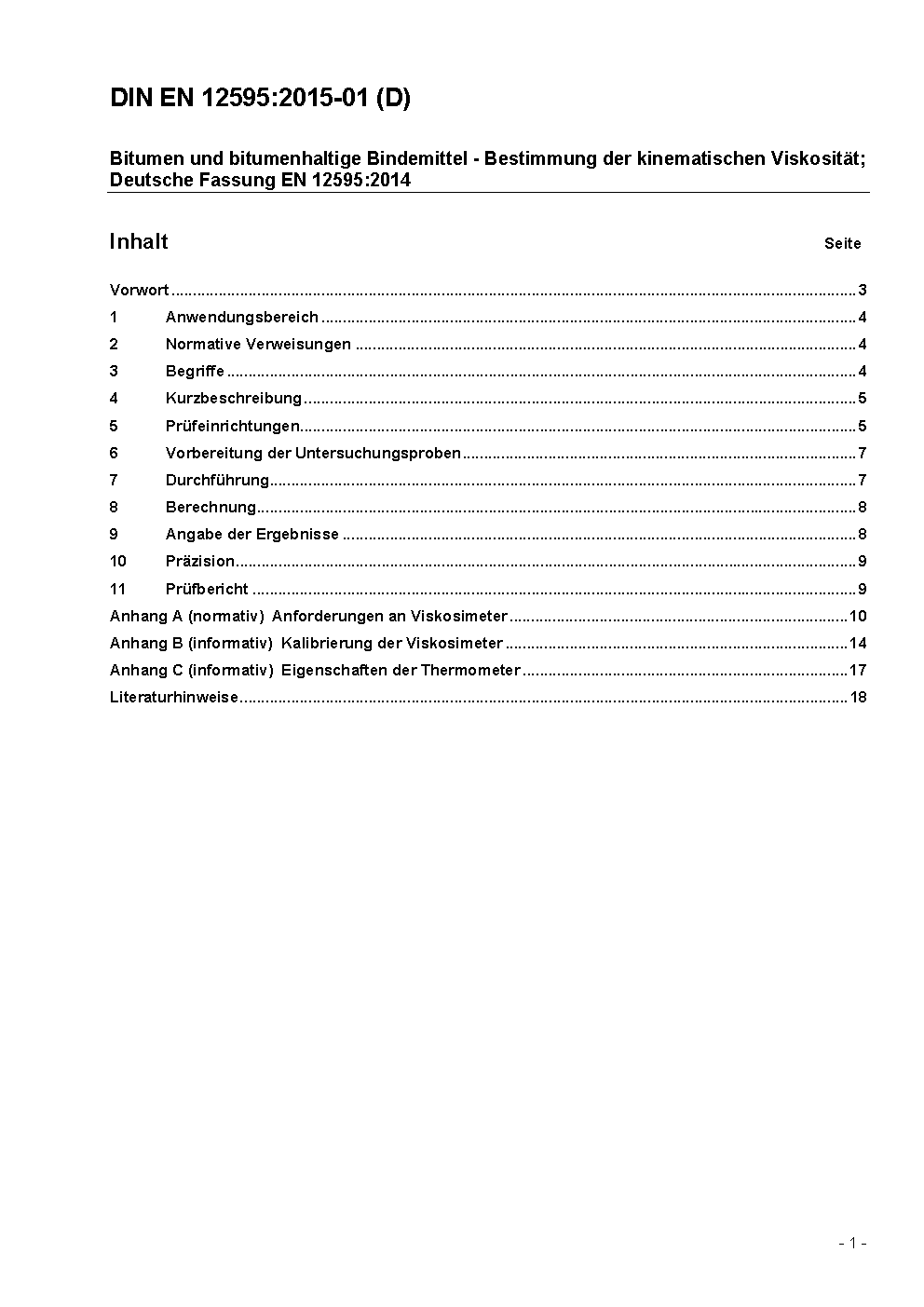 Bitumen und bitumenhaltige Bindemittel - Bestimmung der kinematischen Viskosität; Deutsche Fassung EN 12595:2007