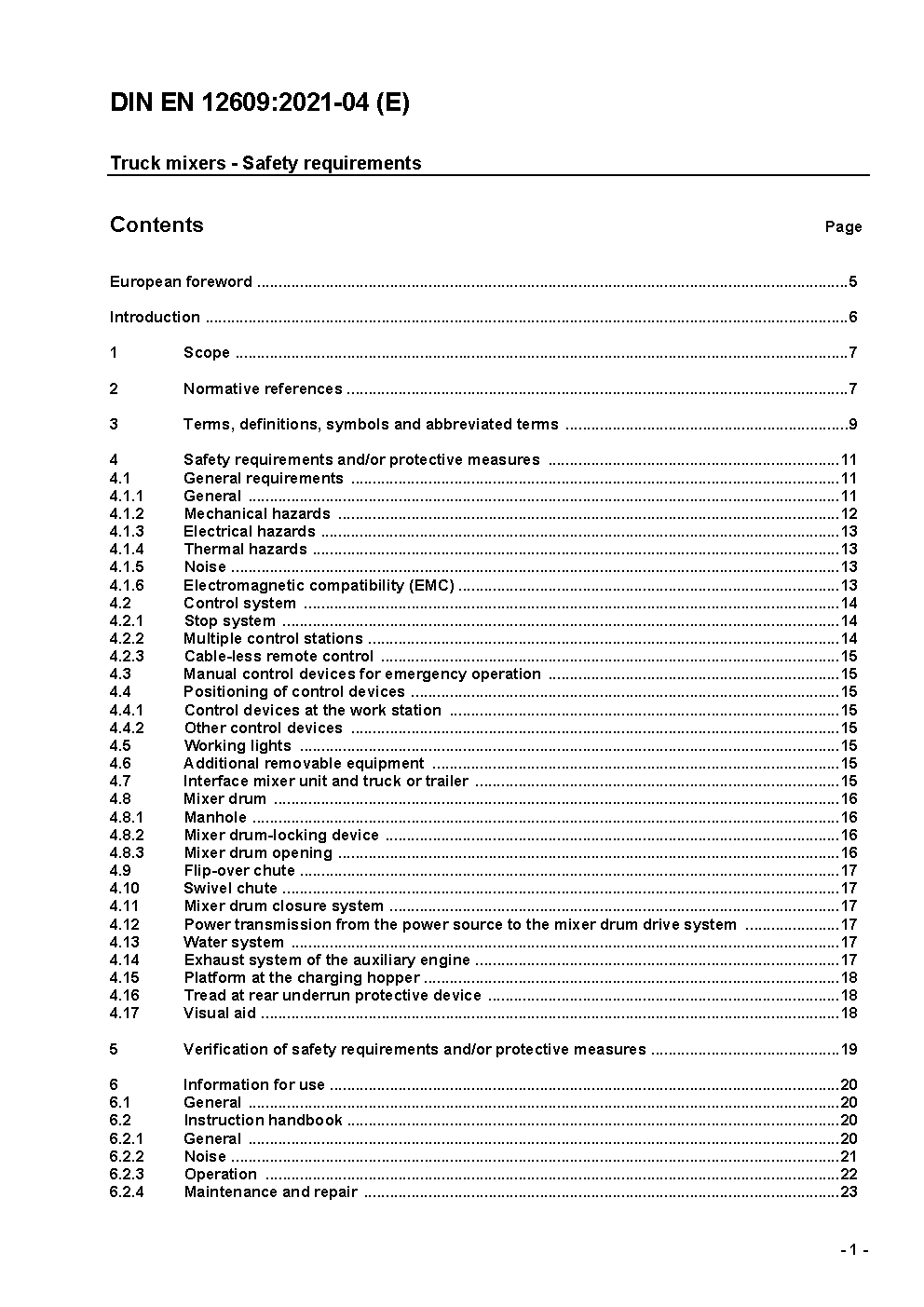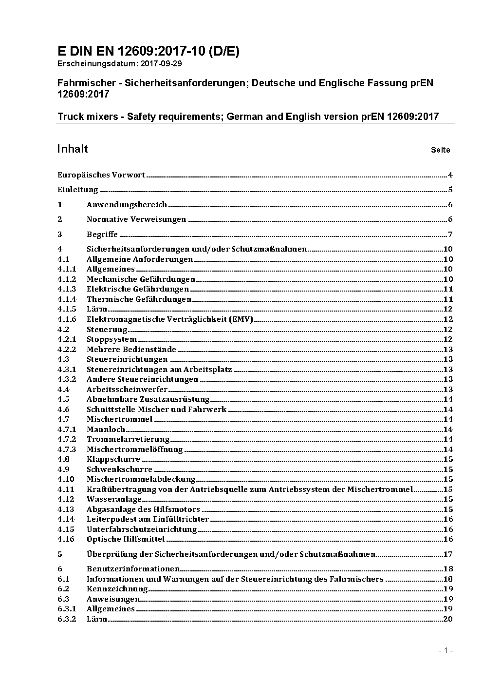 Fahrmischer - Sicherheitsanforderungen; Deutsche und Englische Fassung prEN 12609:2017
