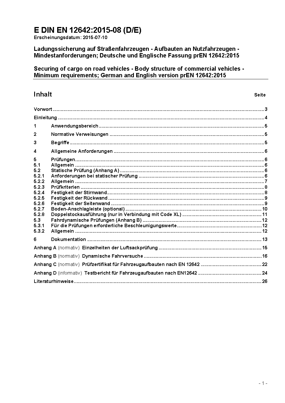 Ladungssicherung auf Straßenfahrzeugen - Aufbauten an Nutzfahrzeugen - Mindestanforderungen; Deutsche Fassung EN 12642:2006