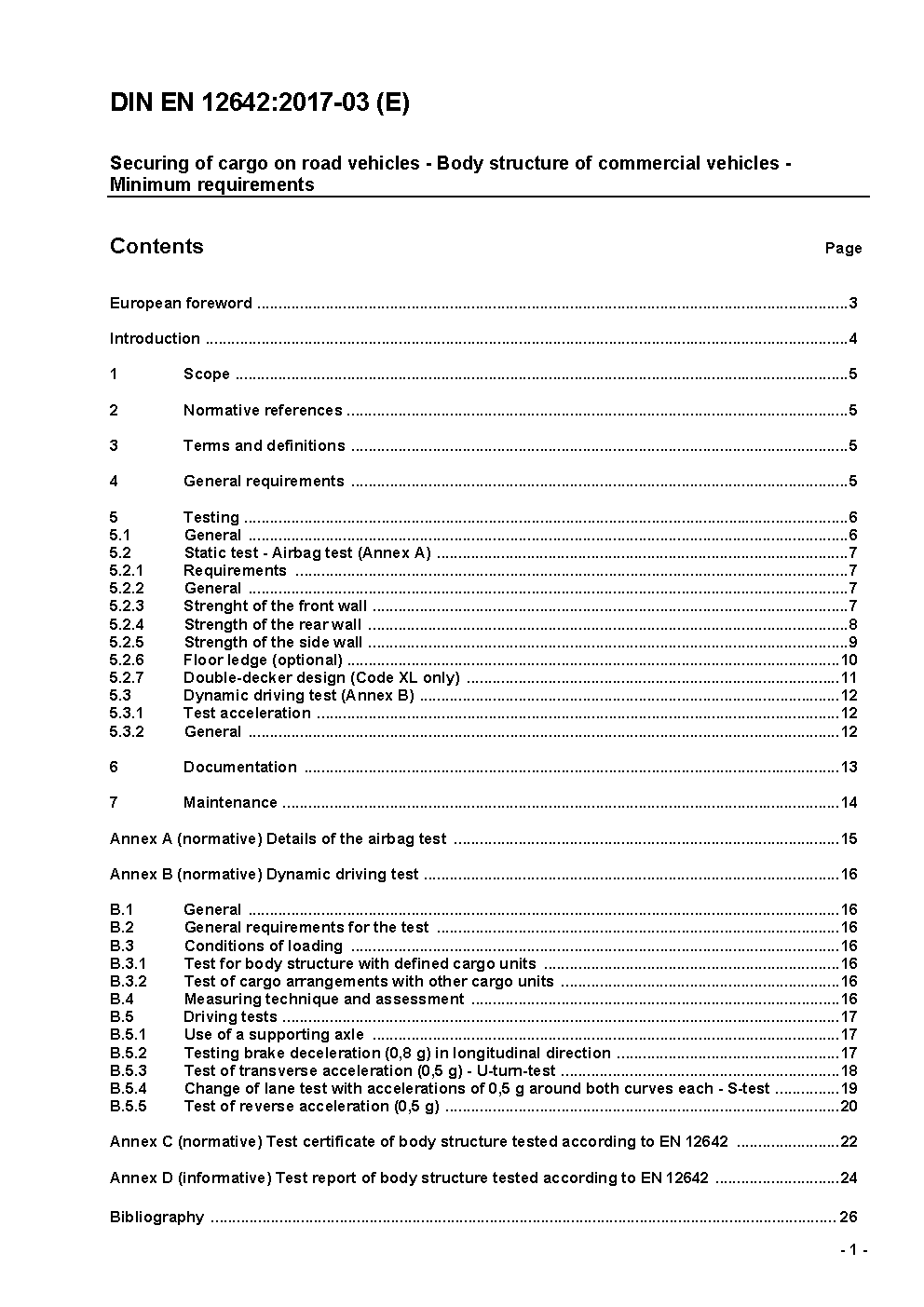 Securing of cargo on road vehicles - Body structure of commercial vehicles - Minimum requirements; German version EN 12642:2006
