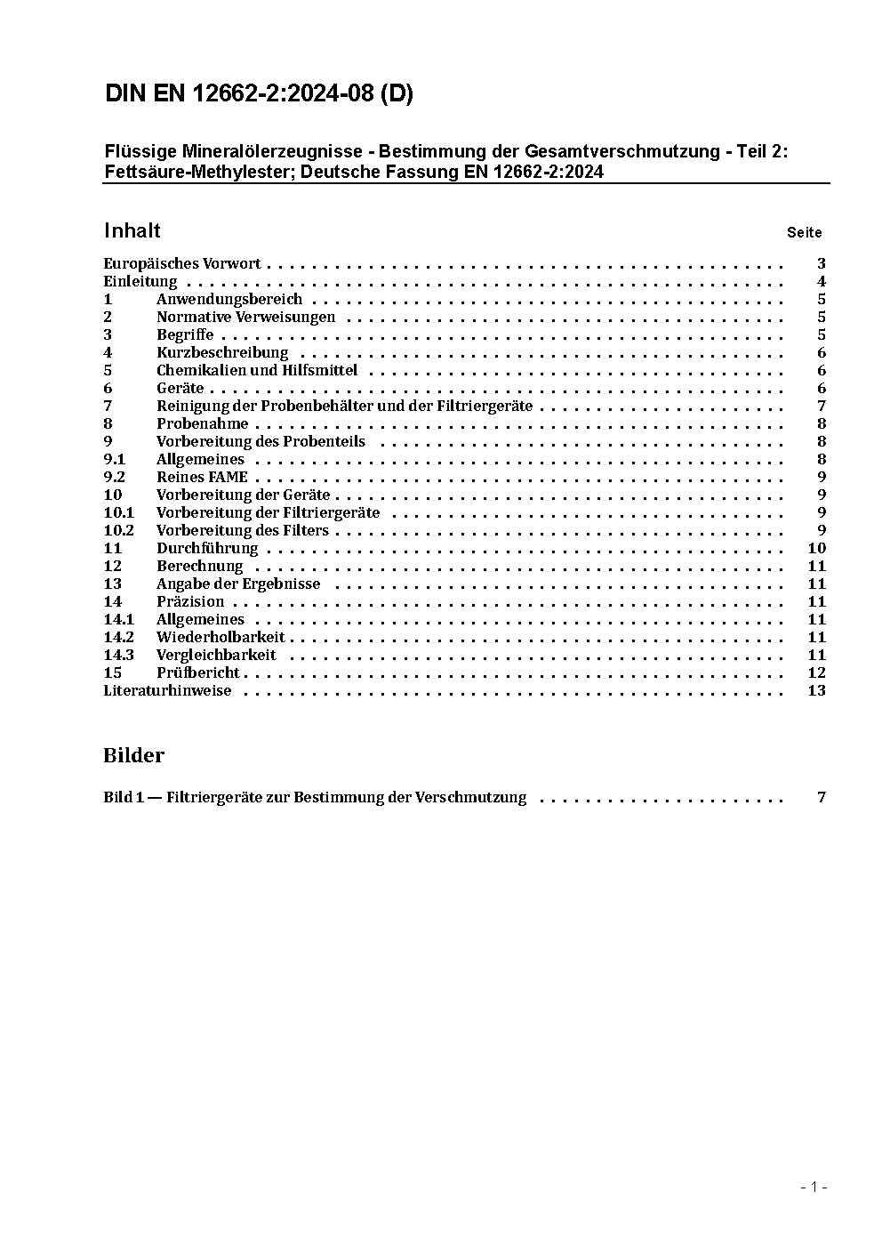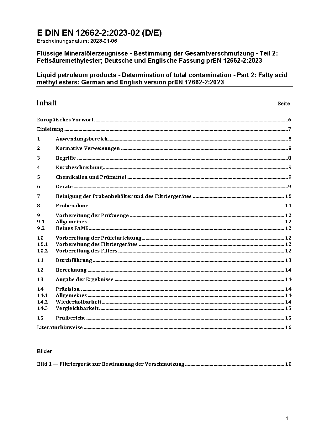 Flüssige Mineralölerzeugnisse - Bestimmung der Gesamtverschmutzung - Teil 2: Fettsäuremethylester; Deutsche und Englische Fassung prEN 12662-2:2023