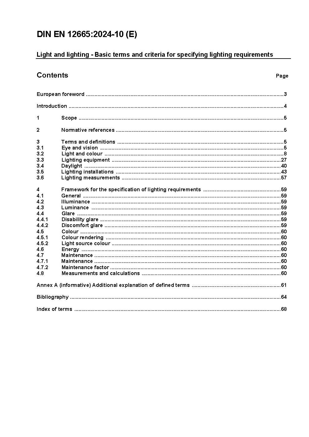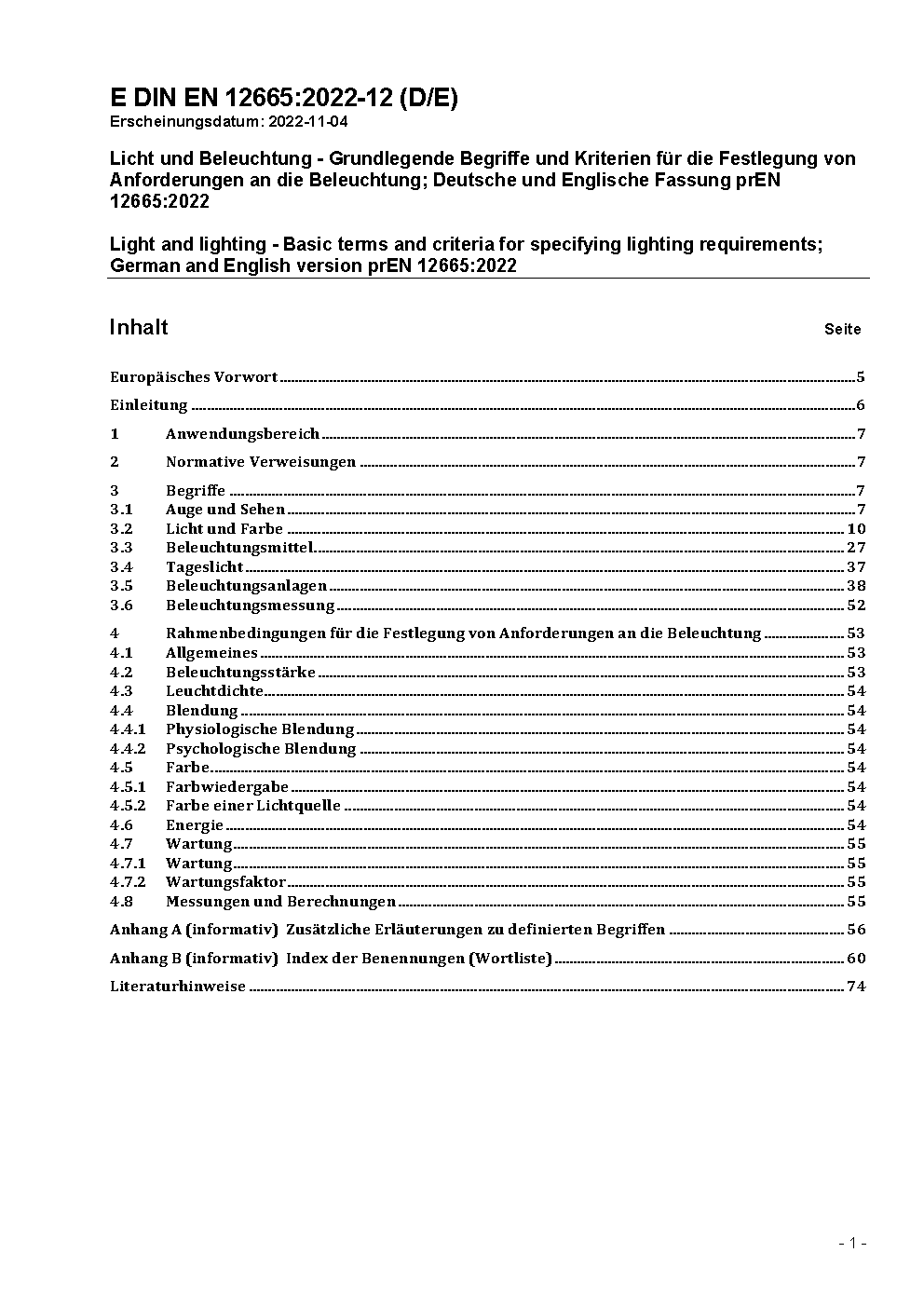 Lighting applications - Basic terms and criteria for specifying lighting requirements; German version prEN 12665:1996