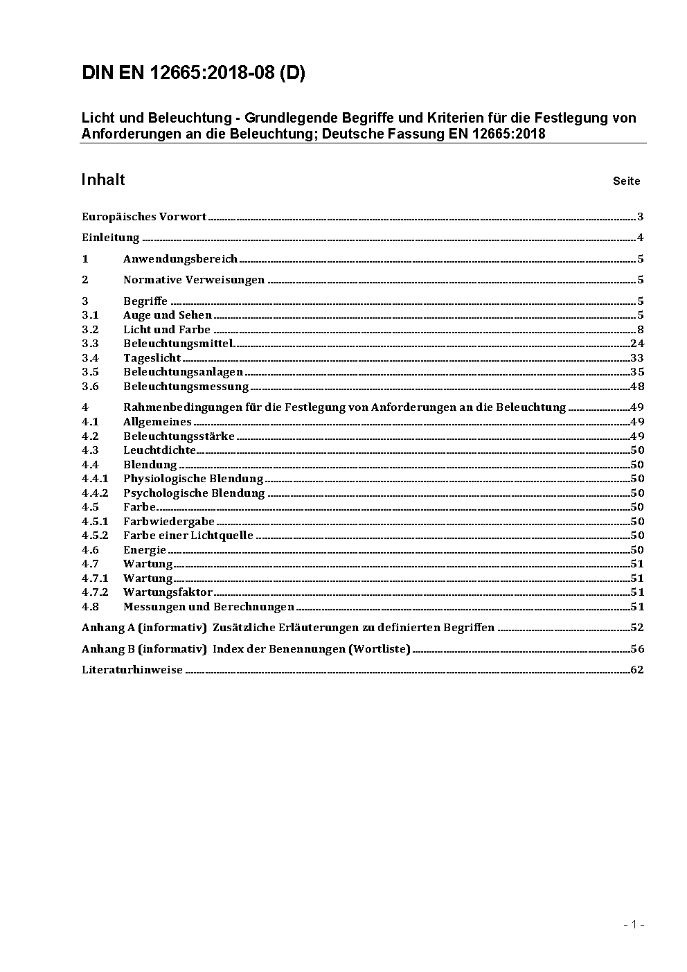 Angewandte Lichttechnik - Grundlegende Begriffe und Kriterien für die Festlegung von Anforderungen an die Beleuchtung; Deutsche Fassung prEN 12665:1996