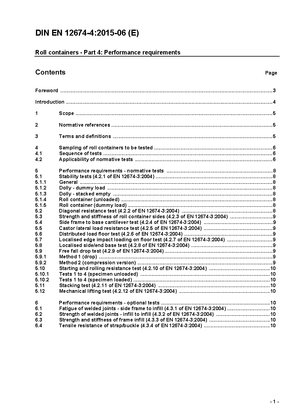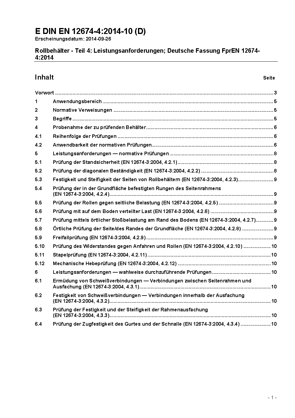 Roll containers - Part 4: Performance requirements; German version EN 12674-4:2015