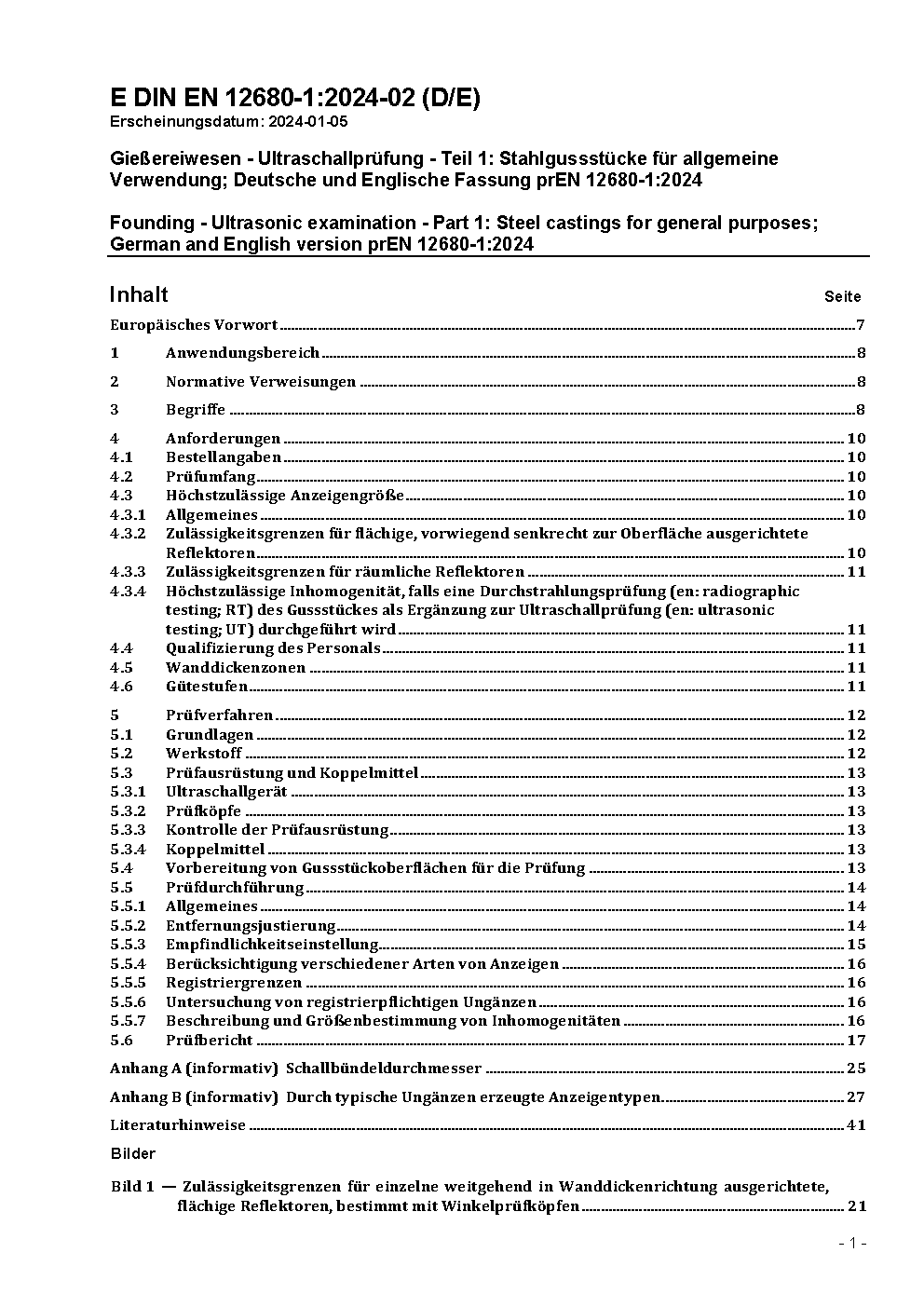Gießereiwesen - Ultraschallprüfung - Teil 1: Stahlgussstücke für allgemeine Verwendung; Deutsche Fassung EN 12680-1:2003