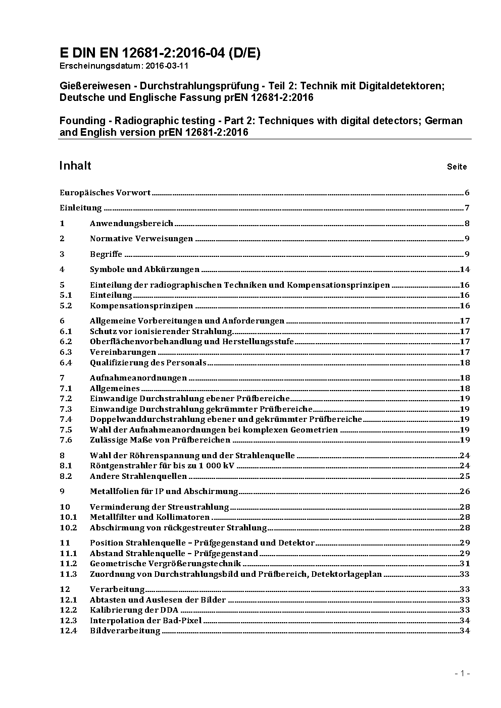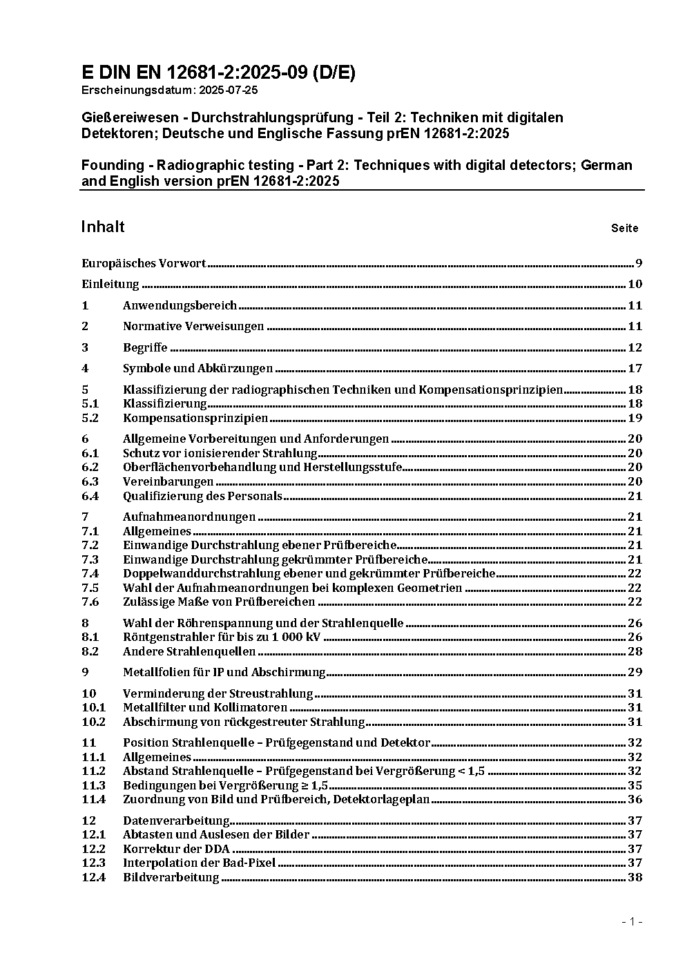 Gießereiwesen - Durchstrahlungsprüfung - Teil 2: Technik mit digitalen Detektoren; Deutsche Fassung EN 12681-2:2017