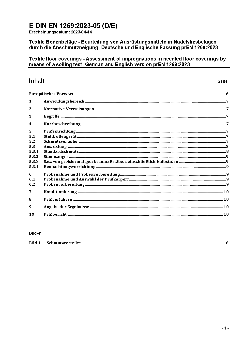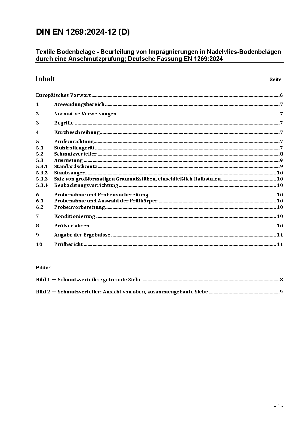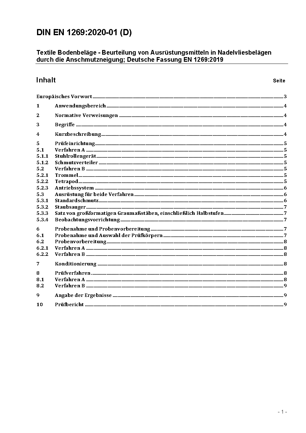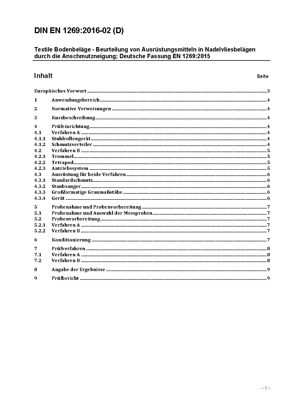 Textile Bodenbeläge - Beurteilung von Ausrüstungsmitteln in Nadelvliesbelägen durch die Anschmutzneigung; Deutsche Fassung EN 1269:1997