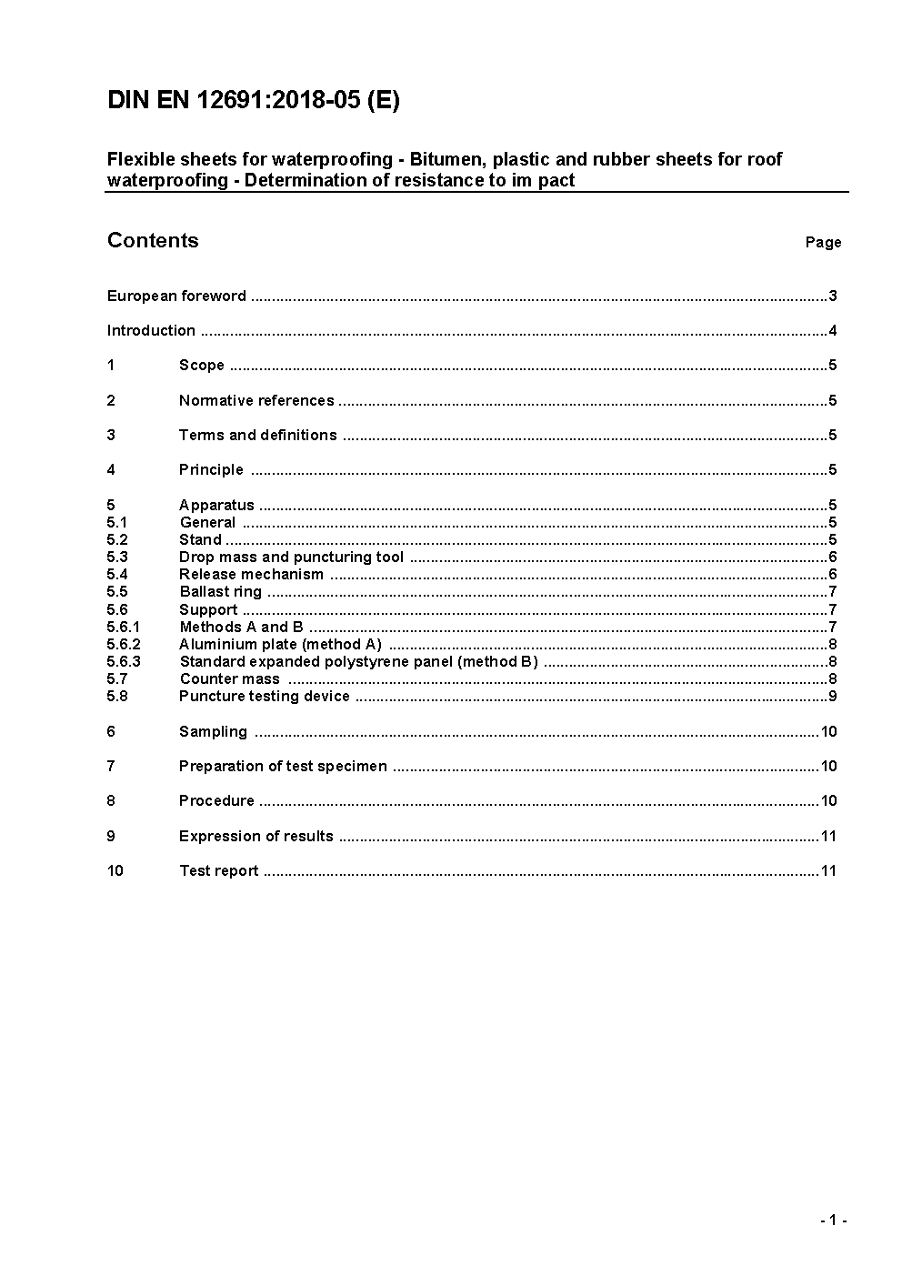 Flexible sheets for waterproofing - Bitumen, plastic and rubber sheets for roof waterproofing - Determination of resistance to impact; German version EN 12691:2018
