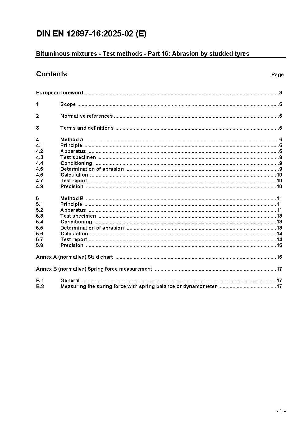 Bituminous mixtures - Test methods - Part 16: Abrasion by studded tyres; German and English version prEN 12697-16:2023