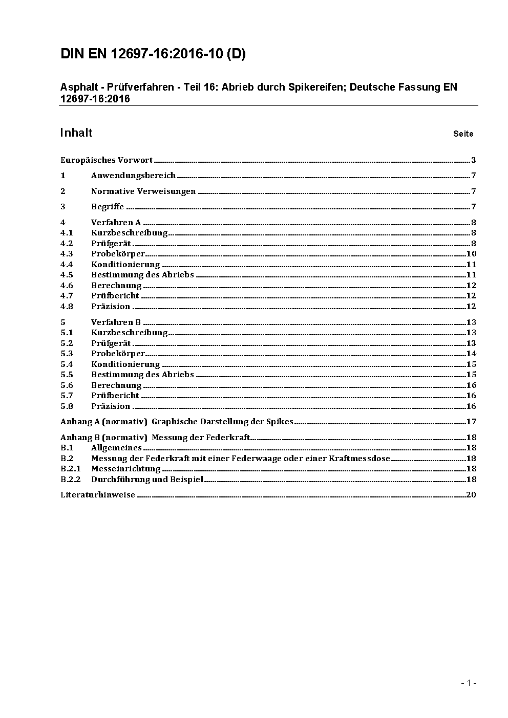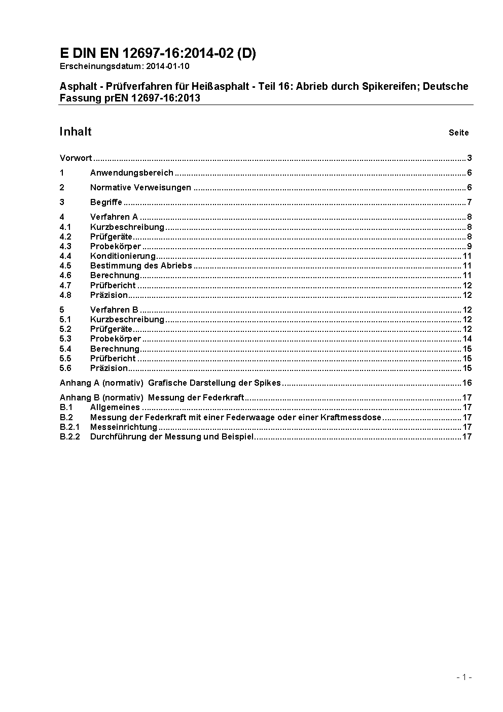 Asphalt - Prüfverfahren - Teil 16: Abrieb durch Spikereifen; Deutsche und Englische Fassung prEN 12697-16:2023