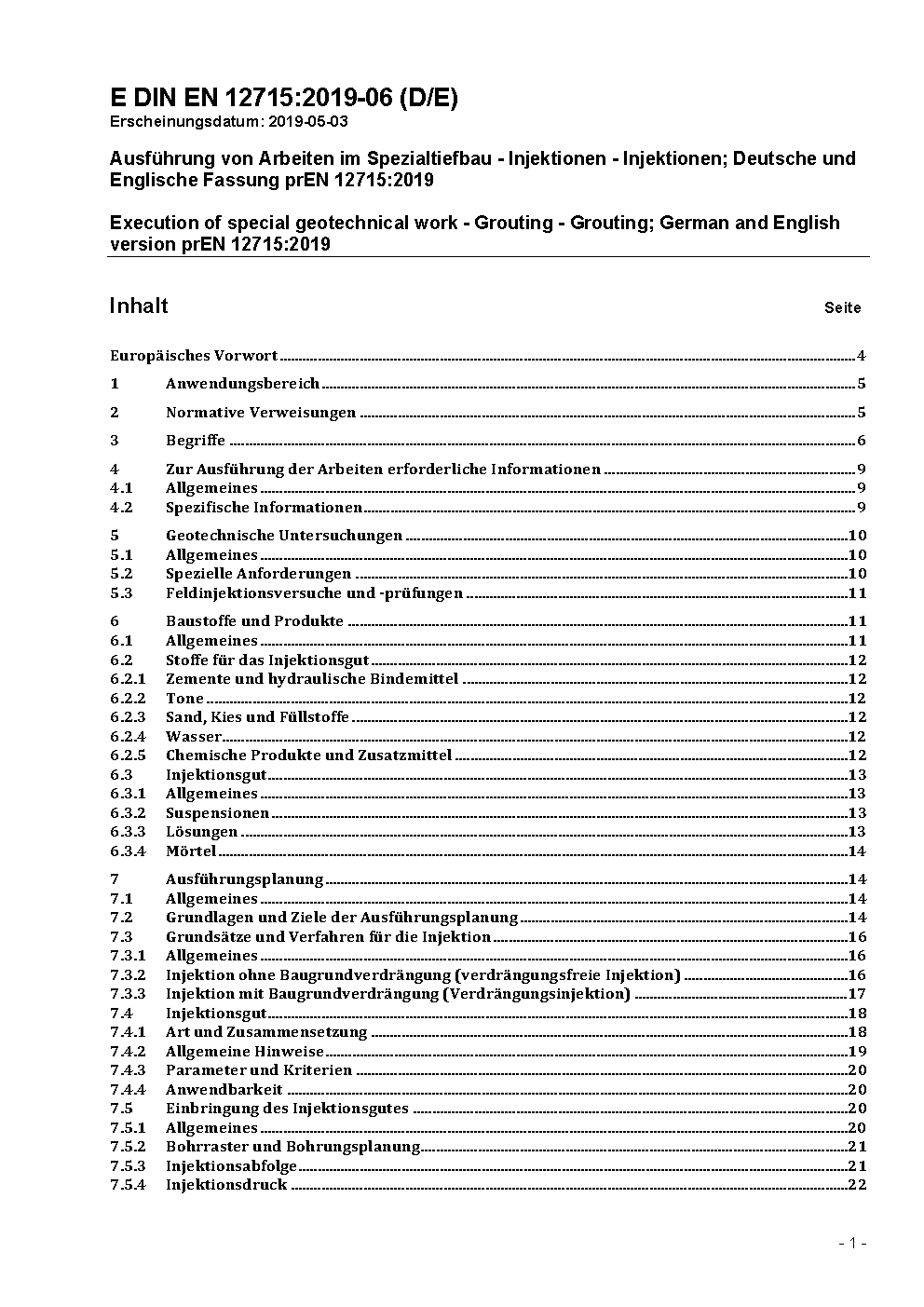Ausführung von besonderen geotechnischen Arbeiten (Spezialtiefbau) - Injektionen; Deutsche Fassung EN 12715:2000