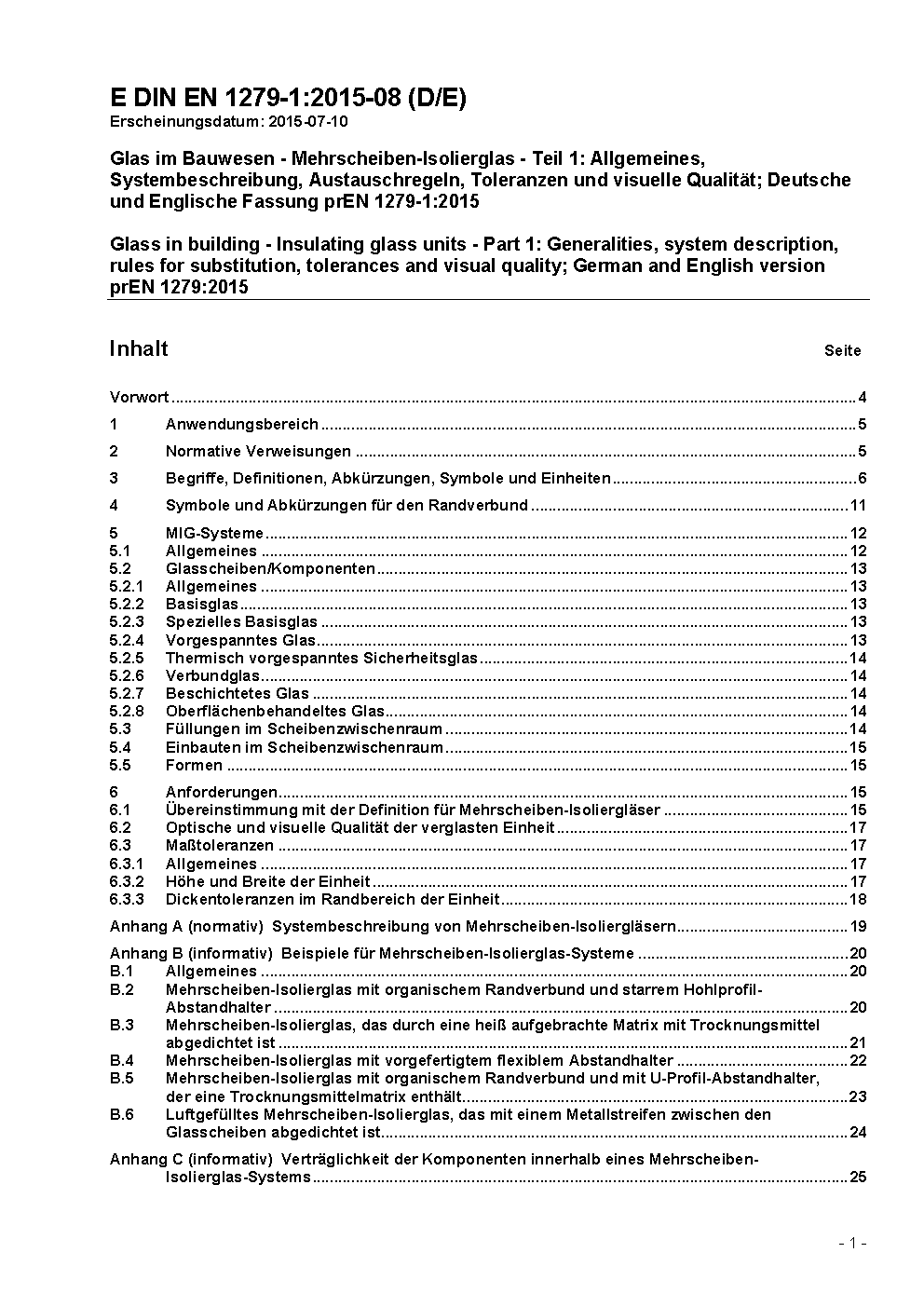 Glas im Bauwesen - Mehrscheiben-Isolierglas - Teil 1: Allgemeines, Maßtoleranzen und Vorschriften für die Systembeschreibung; Deutsche Fassung EN 1279-1:2004