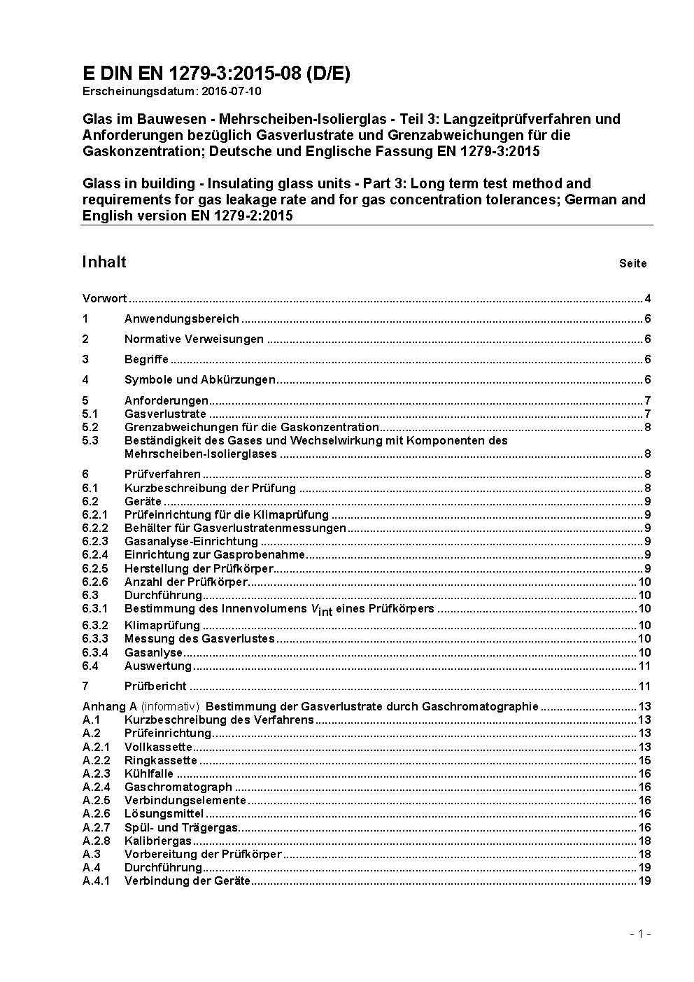 Glas im Bauwesen - Mehrscheiben-Isolierglas - Teil 3: Langzeitprüfverfahren und Anforderungen bezüglich Gasverlustrate und Grenzabweichungen für die Gaskonzentration; Deutsche Fassung EN 1279-3:2002