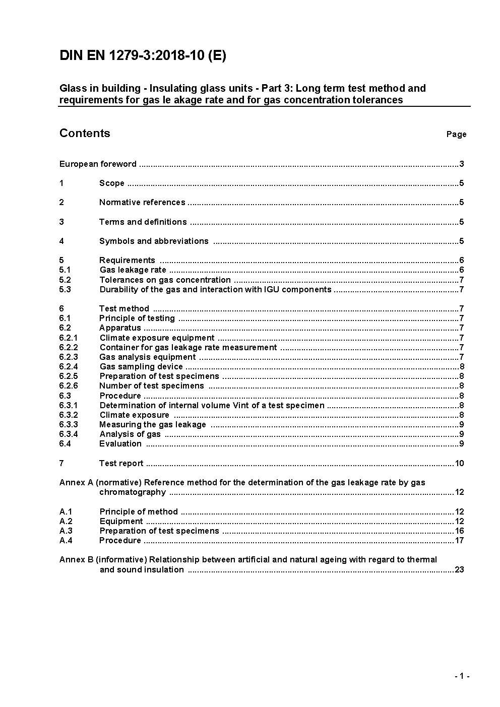Glass in building - Insulating glass units - Part 3: Long term test method and requirements for gas leakage rate and for gas concentration tolerances; German version EN 1279-3:2002