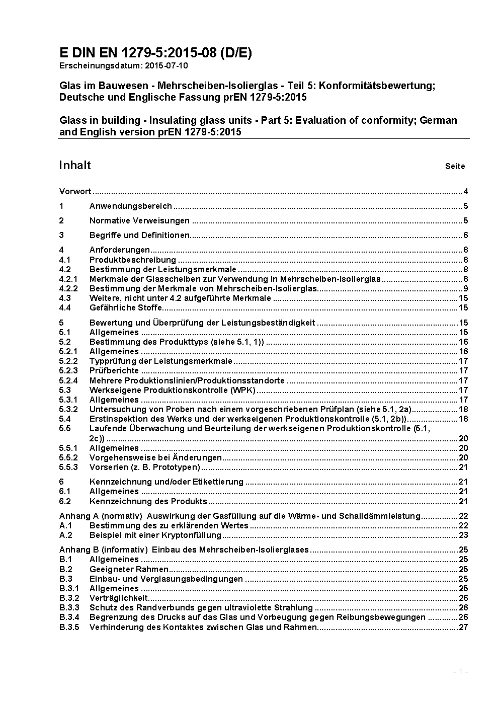 Glas im Bauwesen - Mehrscheiben-Isolierglas - Teil 5: Konformitätsbewertung; Deutsche Fassung EN 1279-5:2005