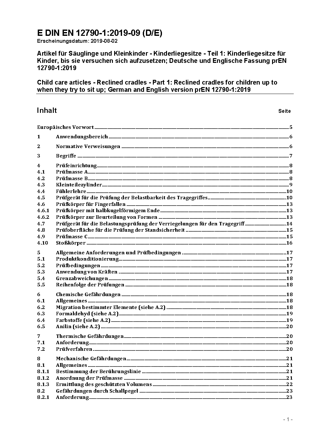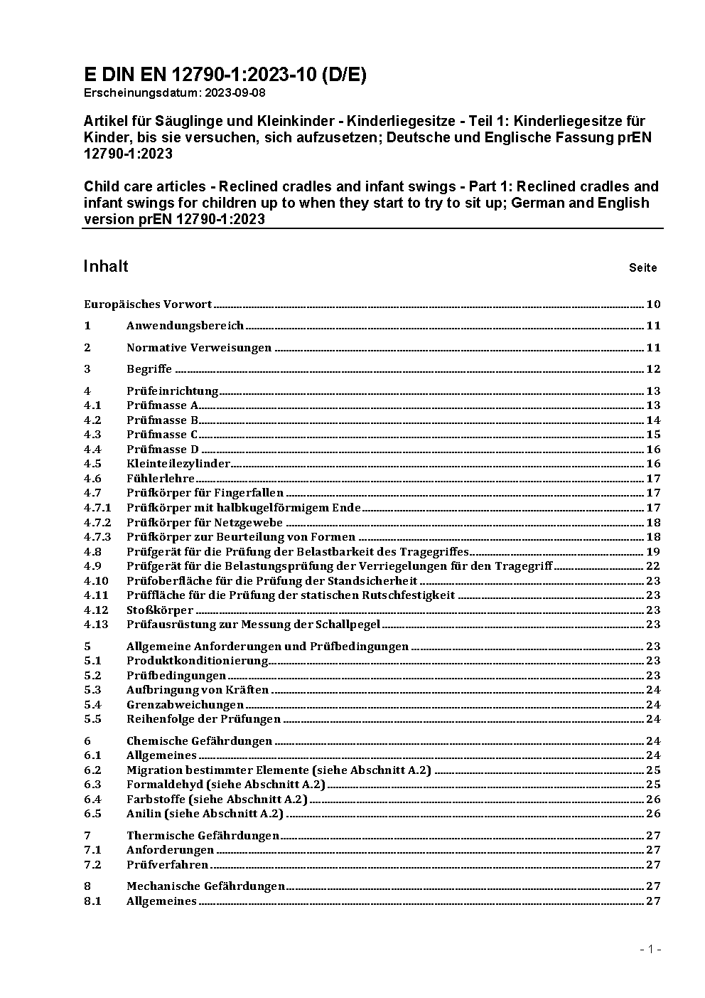 Artikel für Säuglinge und Kleinkinder - Kinderliegesitze - Teil 1: Kinderliegesitze für Kinder, bis sie versuchen, sich aufzusetzen; Deutsche und Englische Fassung prEN 12790-1:2023