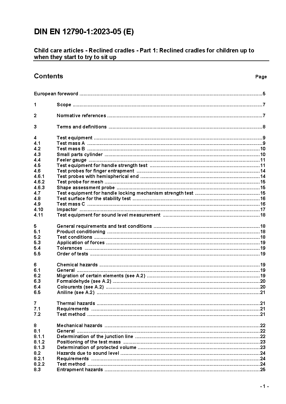 Child care articles - Reclined cradles and infant swings - Part 1: Reclined cradles and infant swings for children up to when they start to try to sit up; German and English version prEN 12790-1:2023