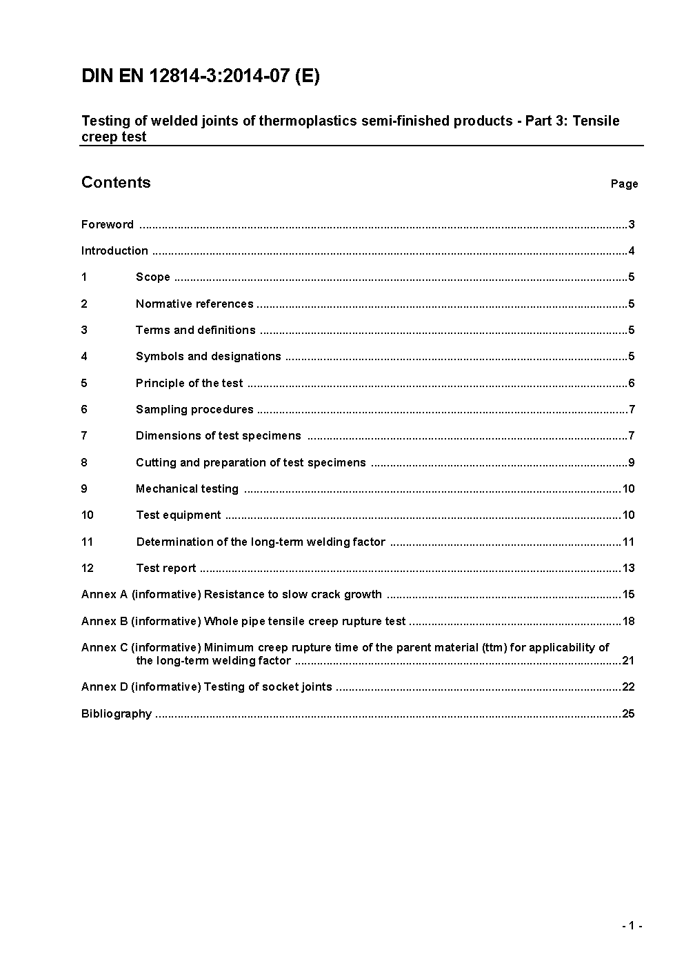 Prüfen von Schweißverbindungen aus thermoplastischen Kunststoffen- Teil 3: Zeitstand-Zugversuch; Deutsche Fassung EN 12814-3:2000