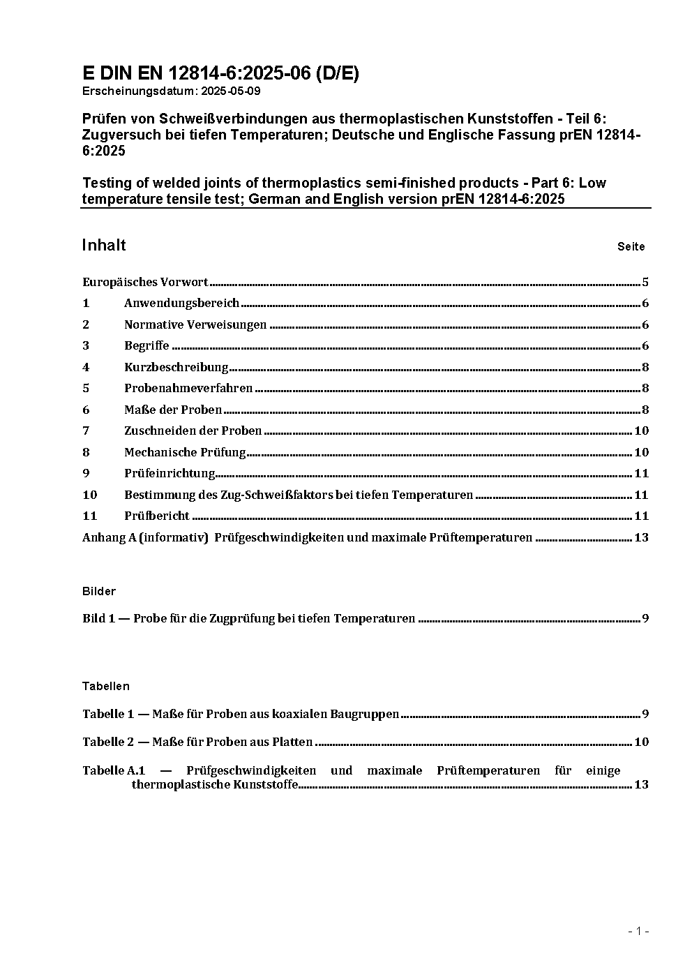 Prüfen von Schweißverbindungen aus thermoplastischen Kunststoffen - Teil 6: Zugversuch bei tiefen Temperaturen; Deutsche Fassung EN 12814-6:2000