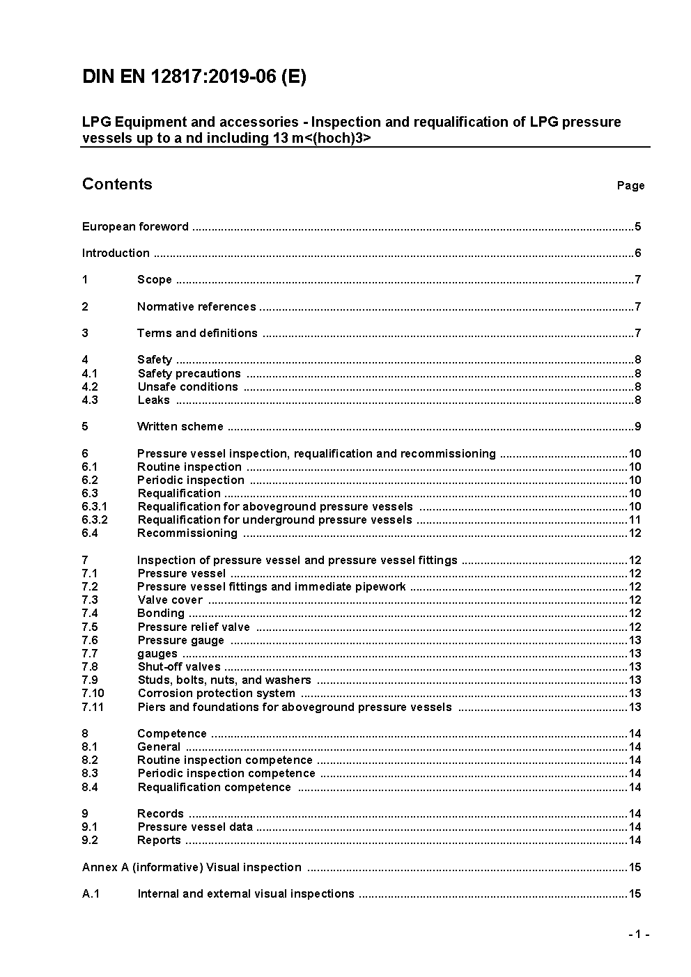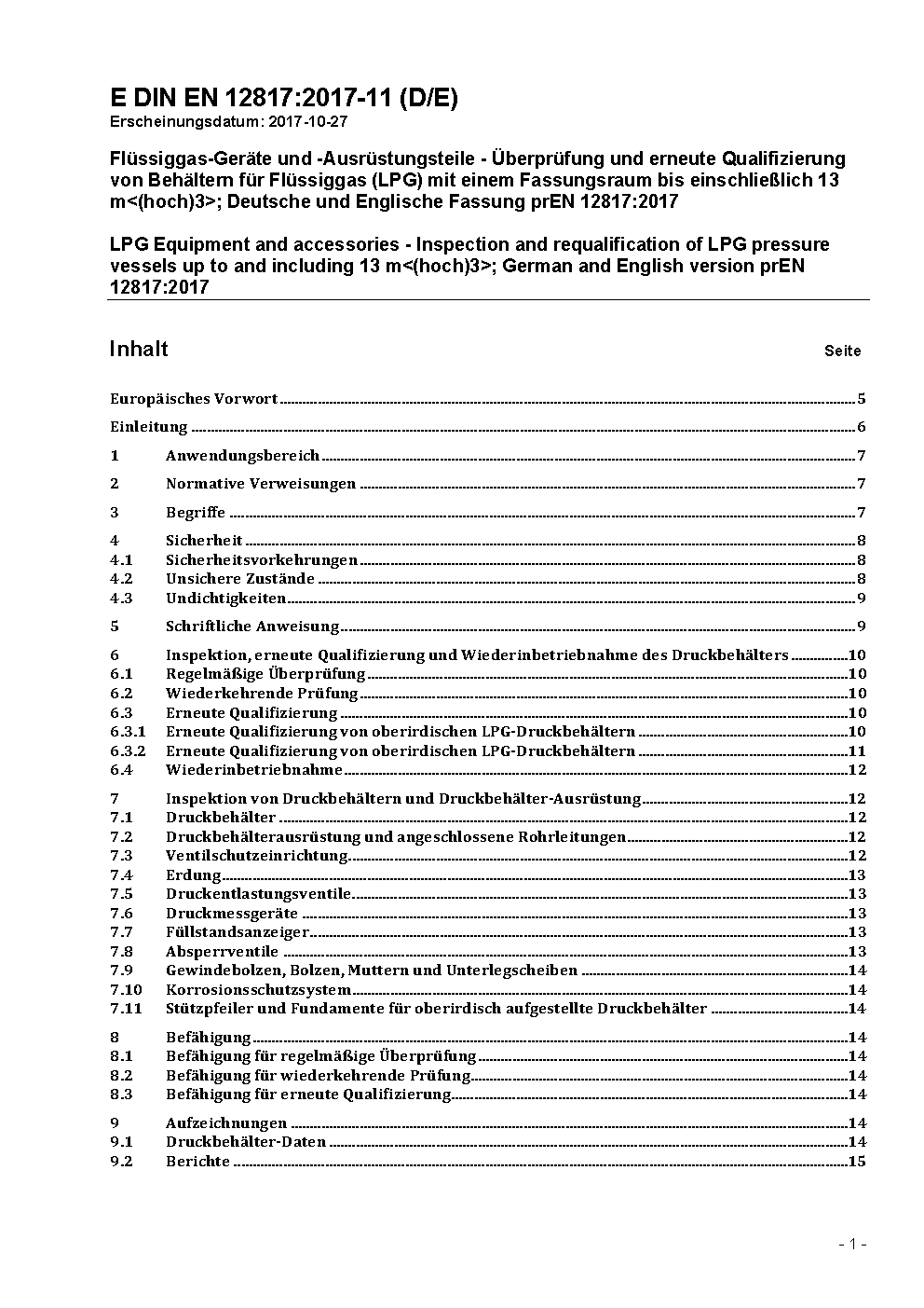 Inspection and requalification of LPG tanks up to and including 13 m<(hoch)3> overground; German version EN 12817:2002