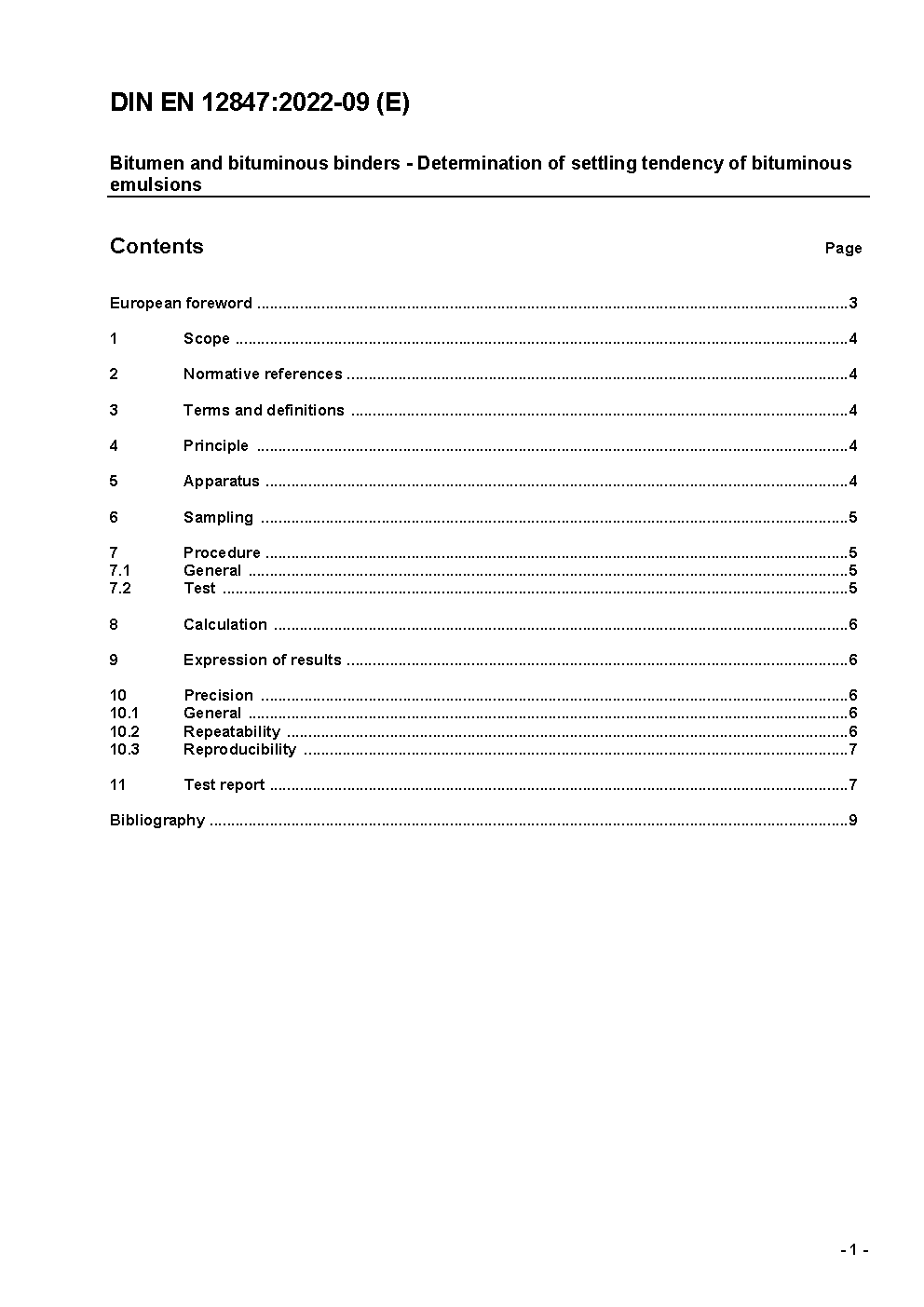 Bitumen and bituminous binders - Determination of settling tendency of bituminous emulsions; German version EN 12847:2009
