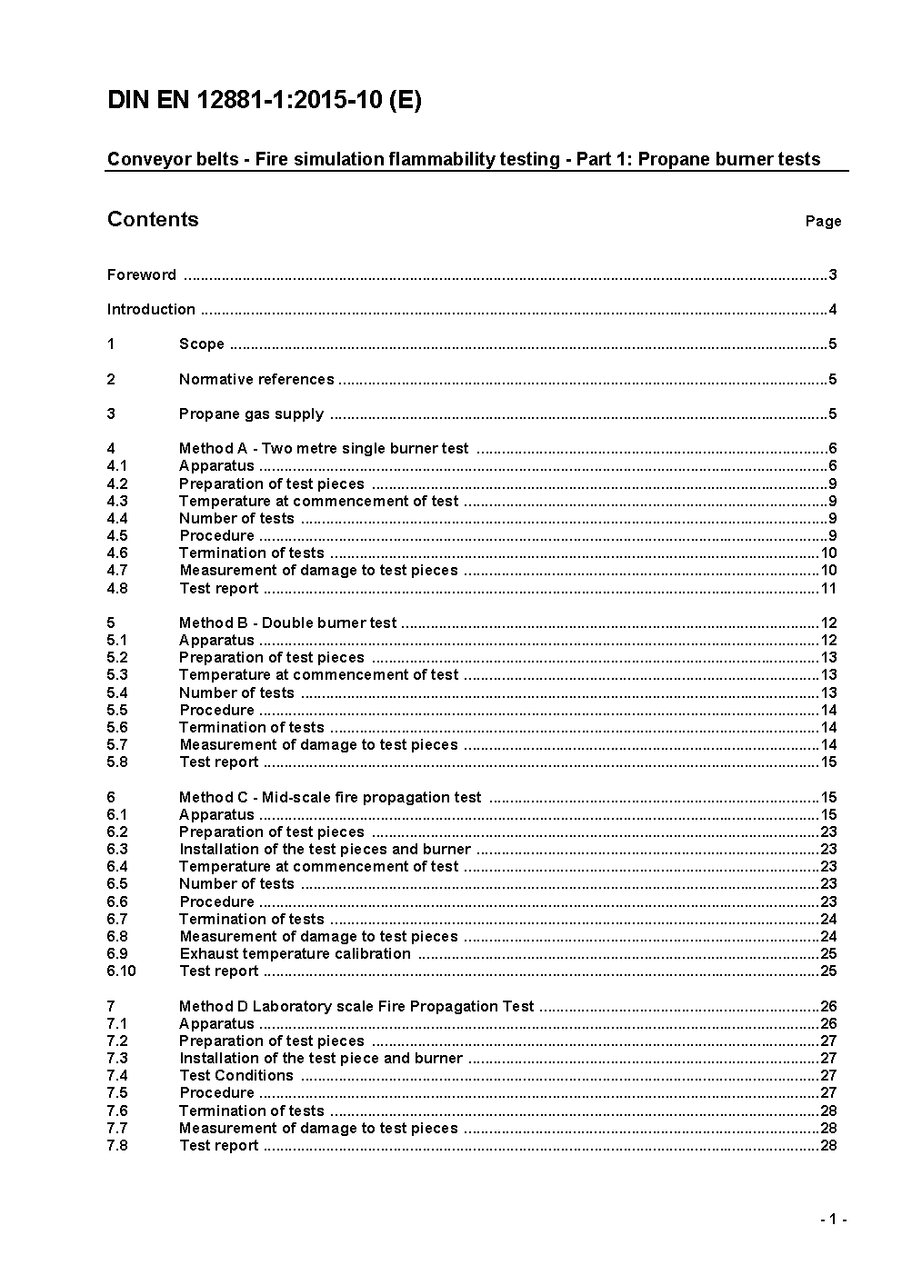 Conveyor belts - Fire simulation flammability testing - Part 1: Propane burner tests; German version EN 12881-1:2005.